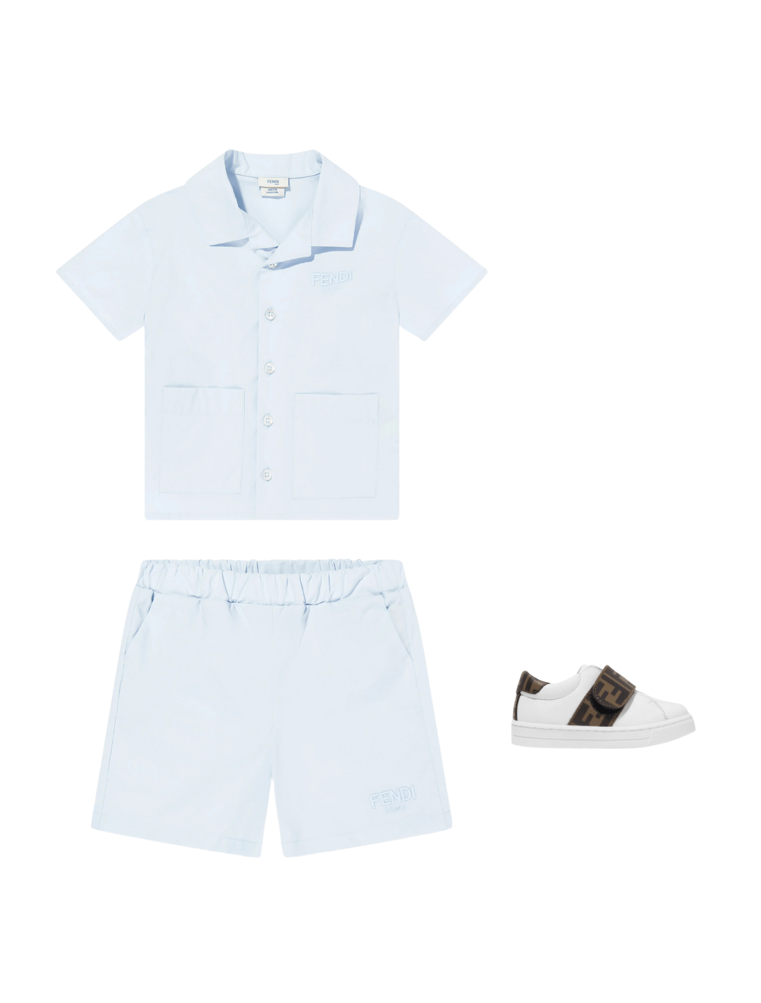 Introducing the exquisite Baby Boys Logo Shorts in Blue by Fendi Kids, a quintessential addition to your young one's wardrobe......