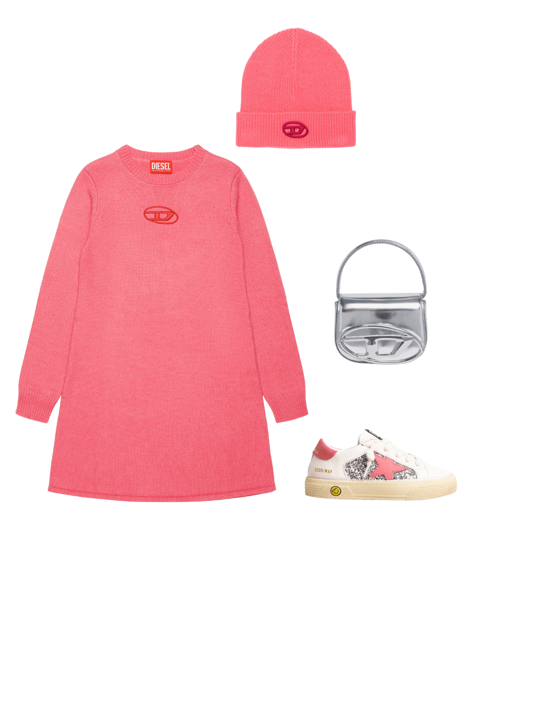 Introducing the Girls Oval D Sweater Dress in Pink by Diesel, an essential addition to your girl's AW2024 wardrobe. Imbued......