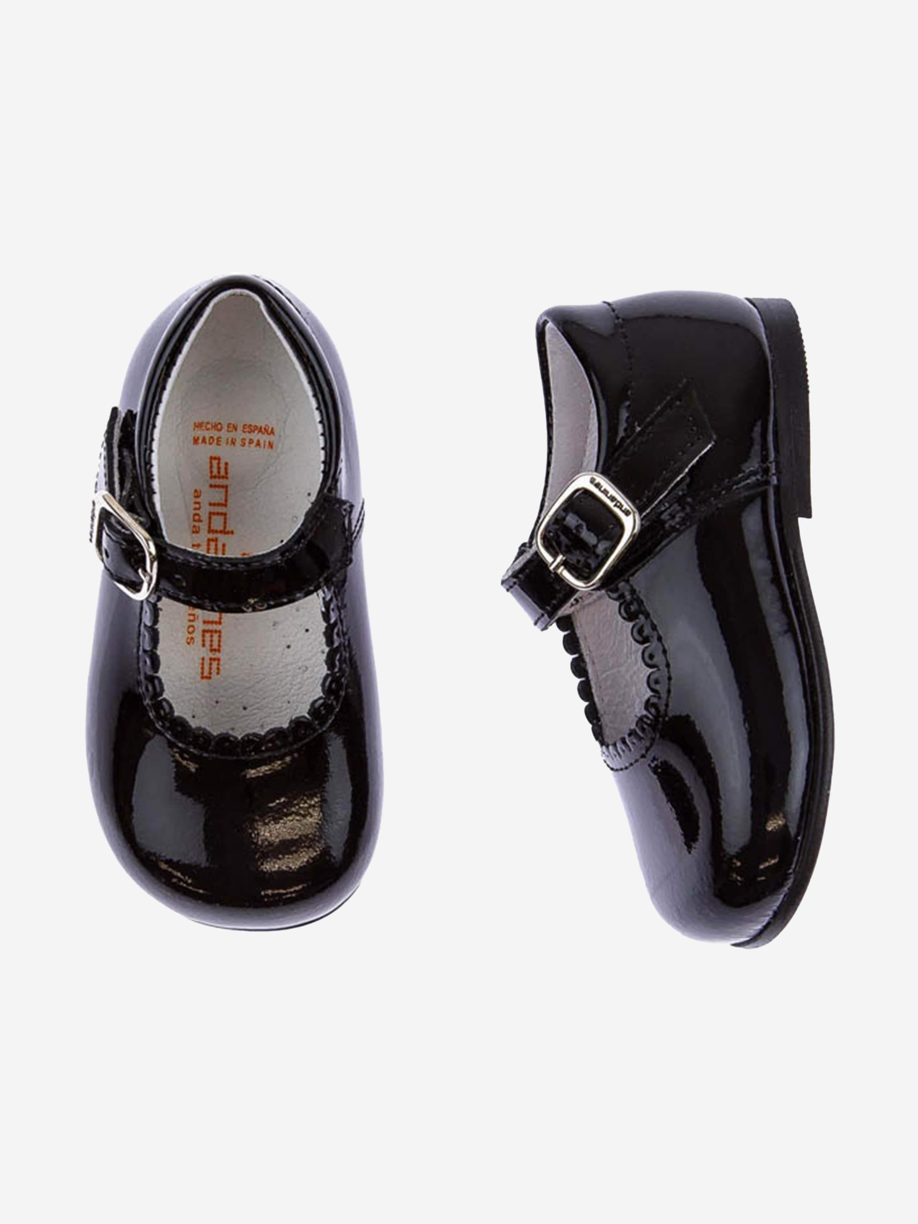 Introducing Andanines' Girls Patent Leather Mary Jane Shoes in Black, a must-have chic addition for your Baby Girl's Back To......