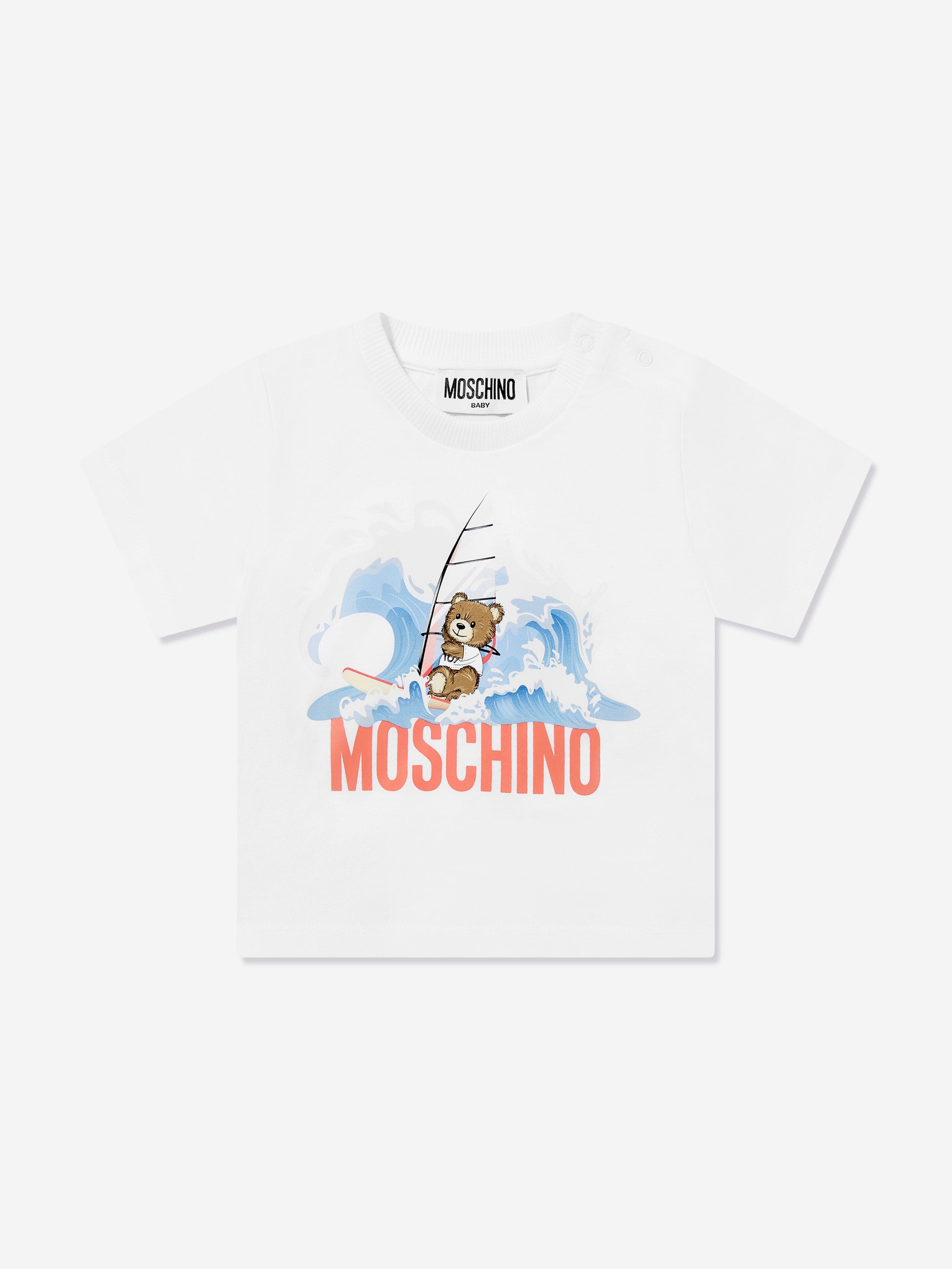 Moschino incorporate unique energy and a wistful elegance into their Italian designs. This baby boys white and ocean blue short......