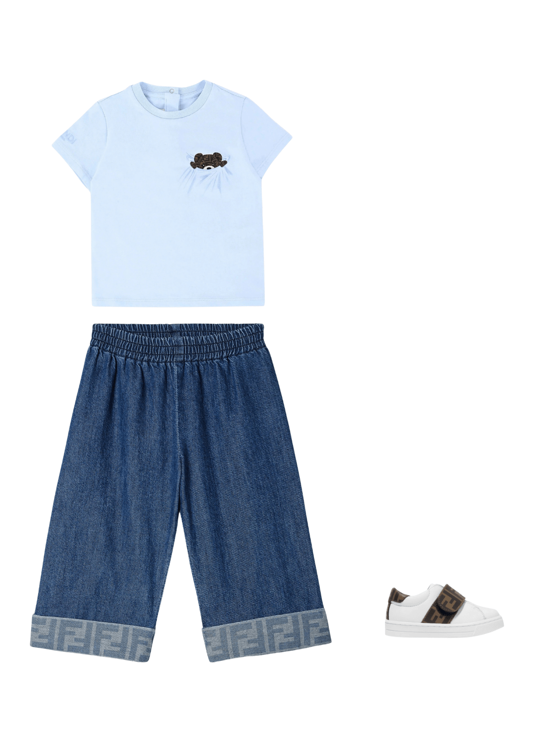 Fendi incorporate the traditional with the modern in their luxurious utilitarian abstracts. These baby unisex wide leg jeans embody the......