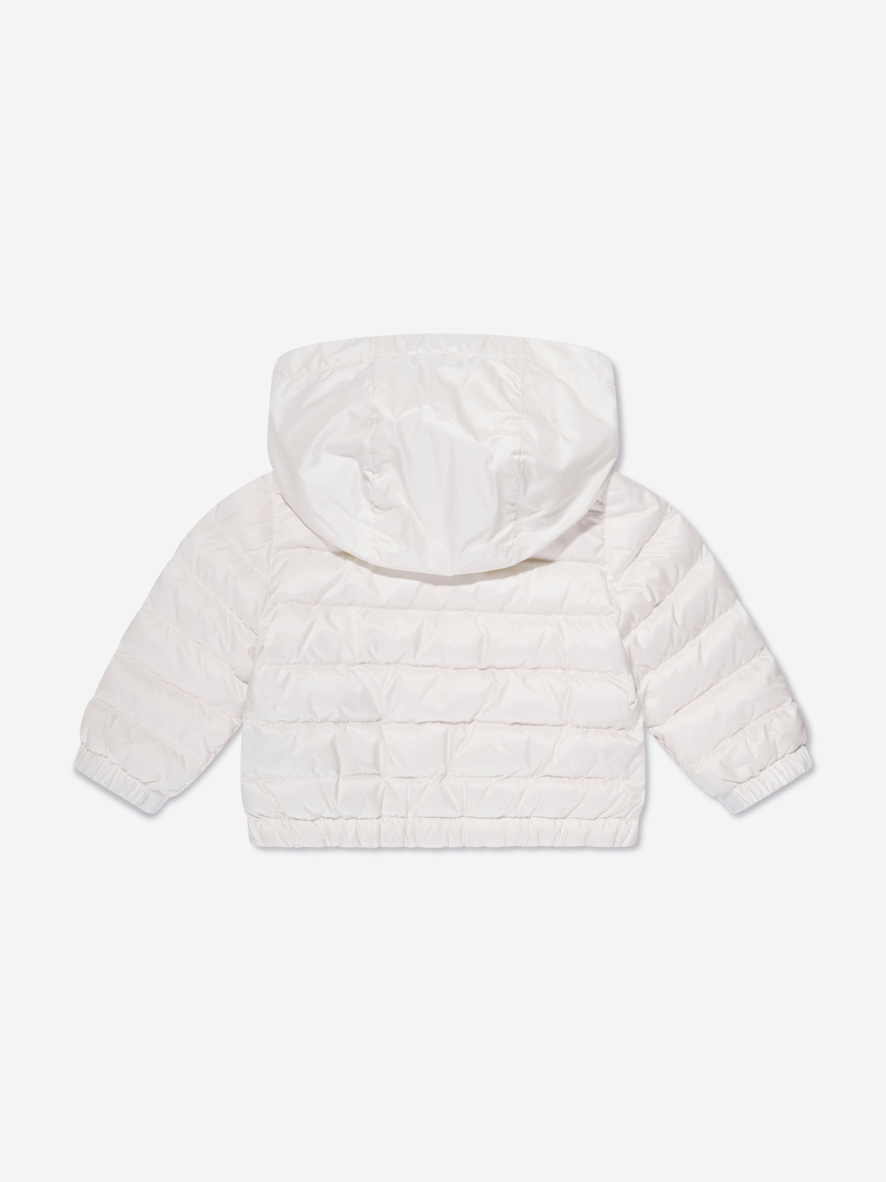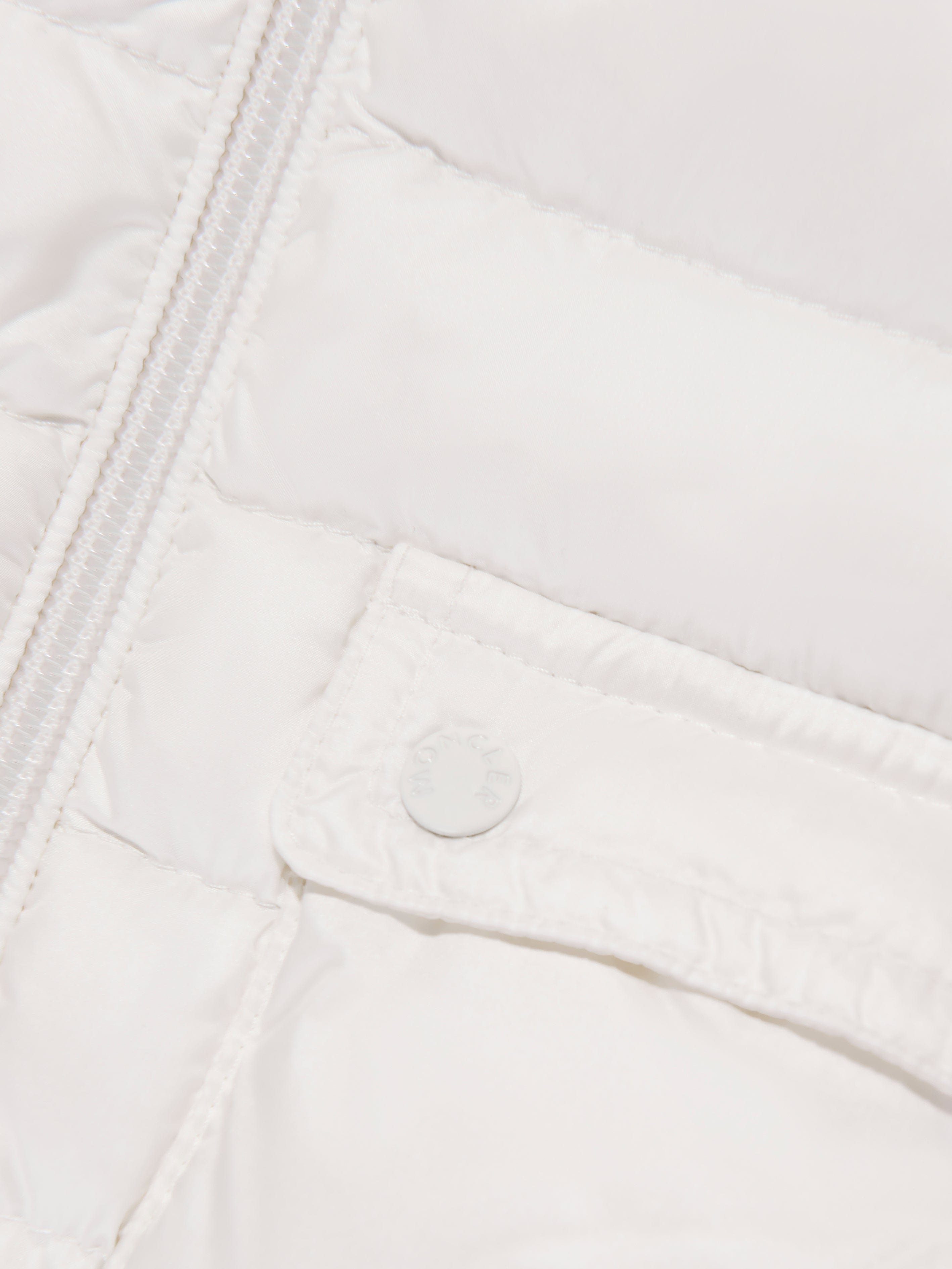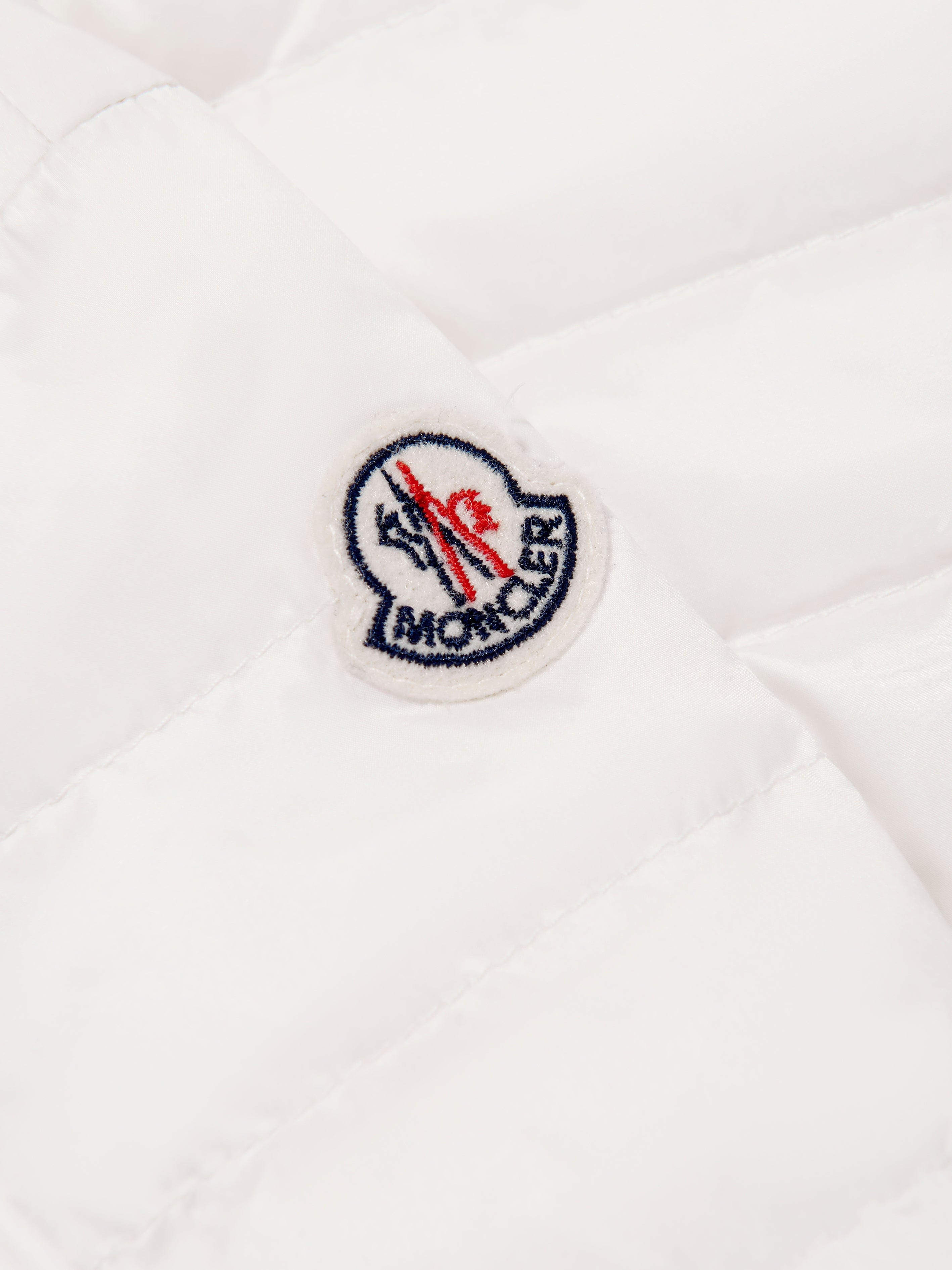 Moncler reincarnate outdoor wear into beautifully crafted abstracts reminiscent of the French Alps. This baby girls white Lans jacket utilises......