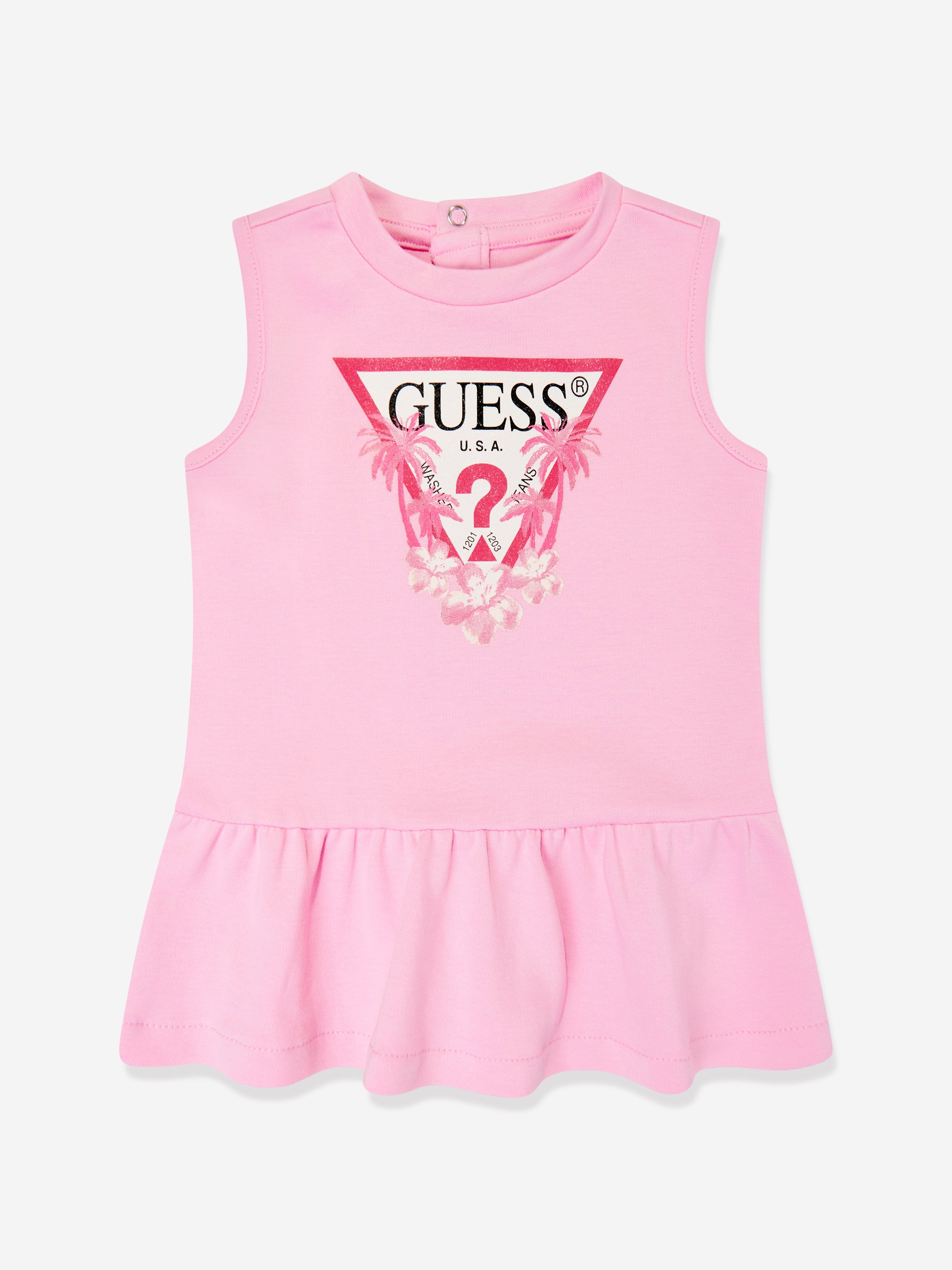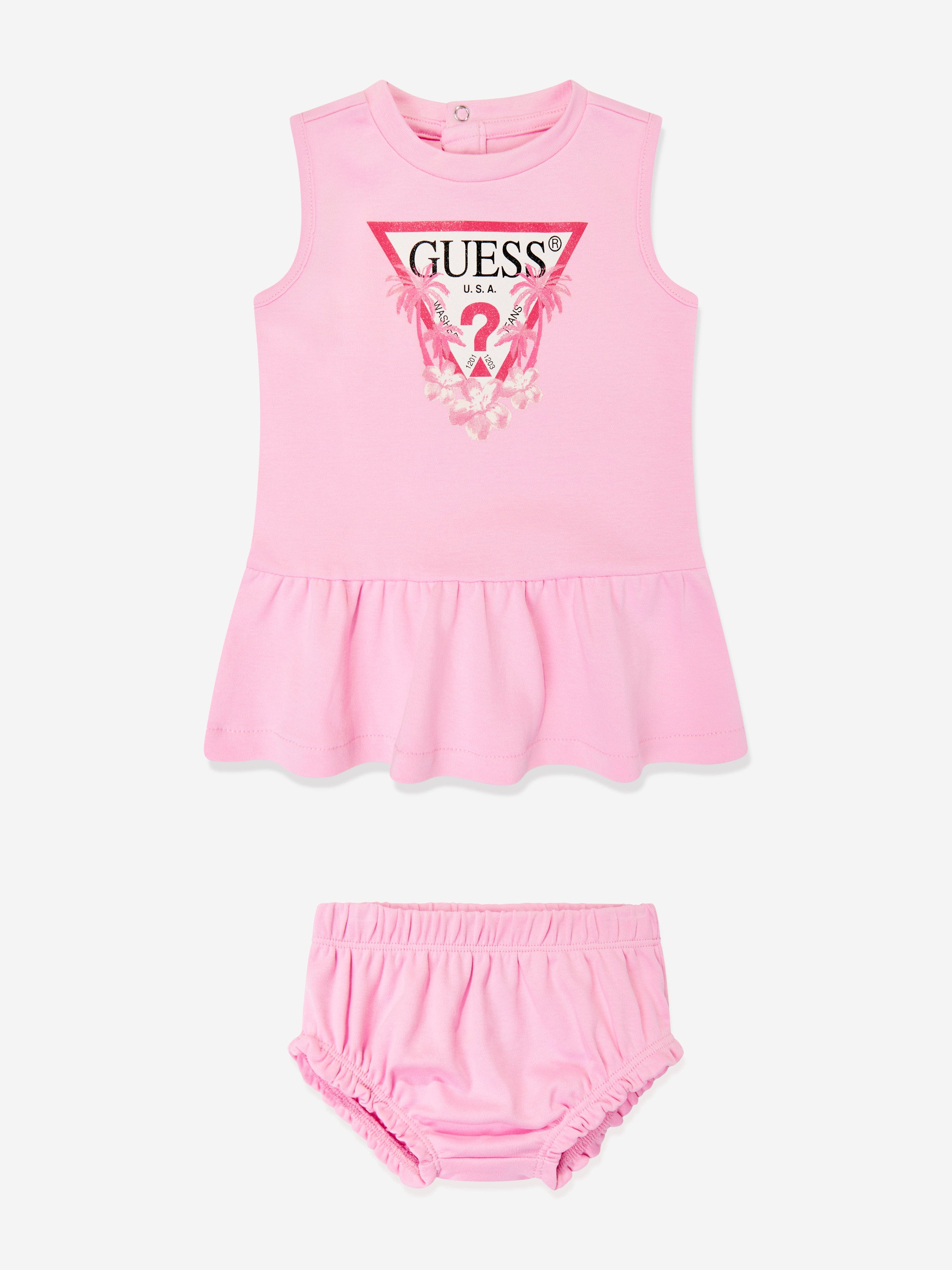 Introducing the exquisite Baby Girls Dress with Knickers in Pink by Guess, the quintessential addition for your little one's year-round......