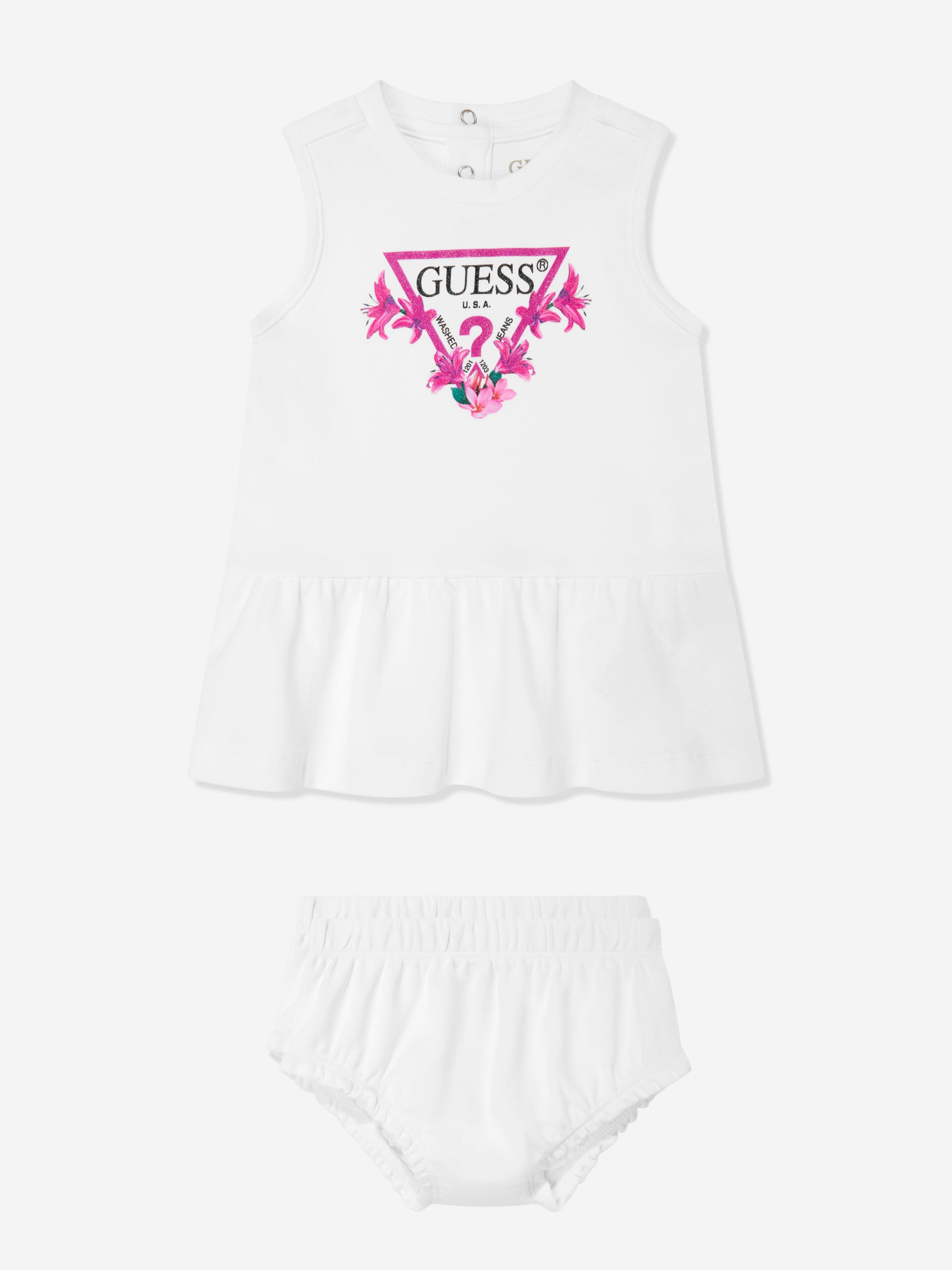 Introducing the exquisite 'Baby Girls Dress with Knickers in White’ by Guess—an essential addition to your little princess's wardrobe for......