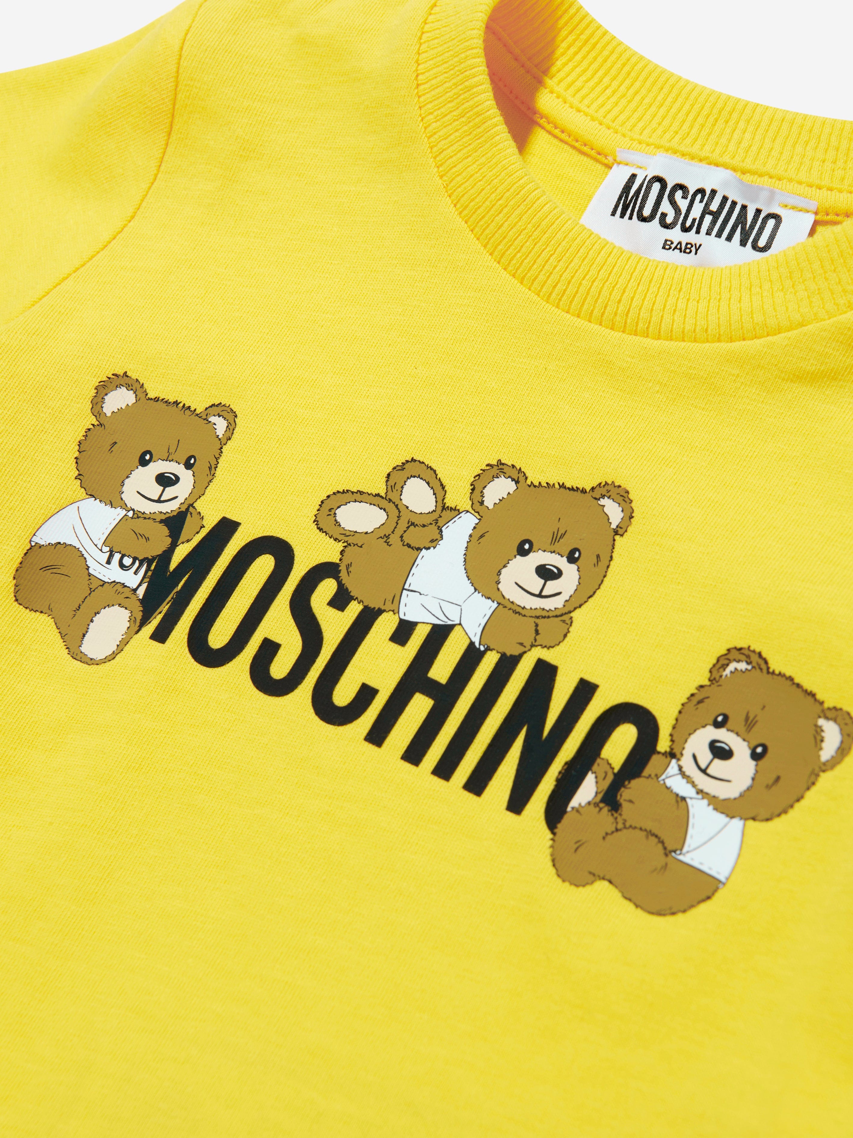 Italian fashion House Moschino depict energy and precision into their fun-filled abstracts. This baby unisex short sleeve t-shirt is woven......