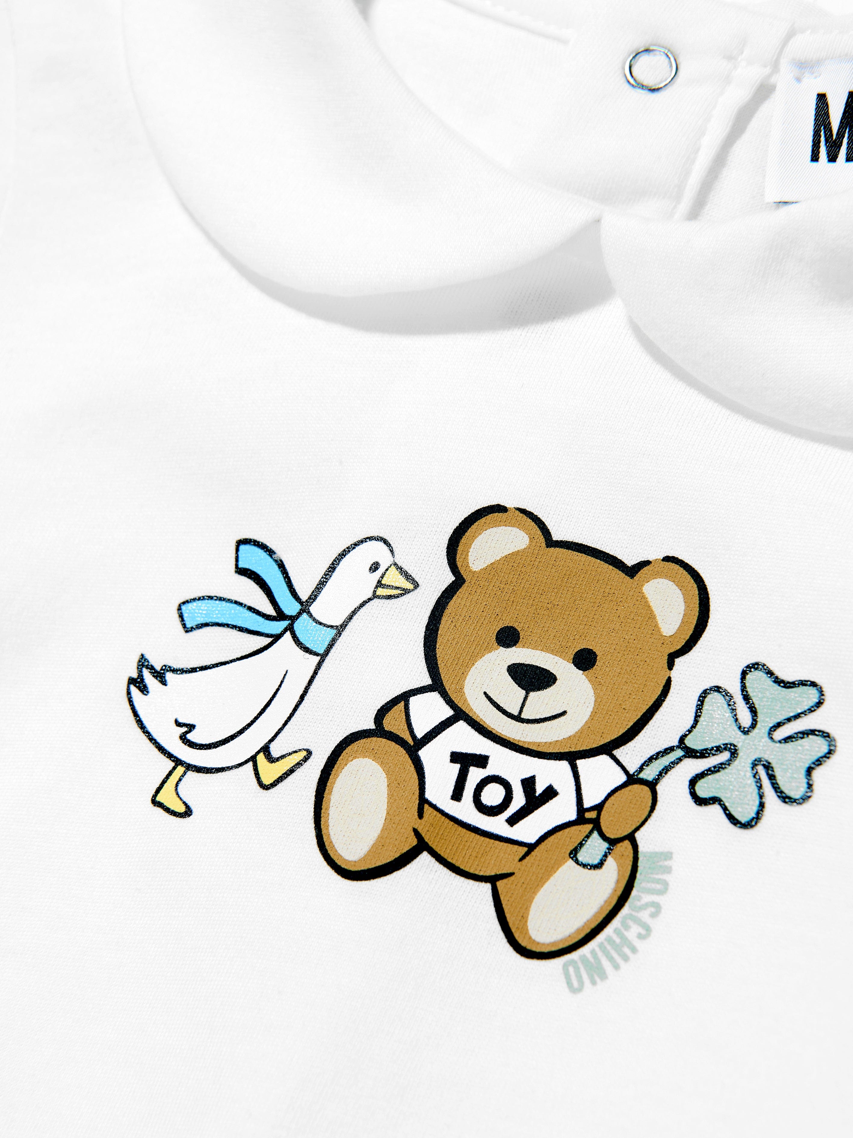 Introducing the exquisite Baby Teddy Bear Romper by Moschino Kids, crafted in elegant Ivory for SS2025. This sublime one-piece merges......