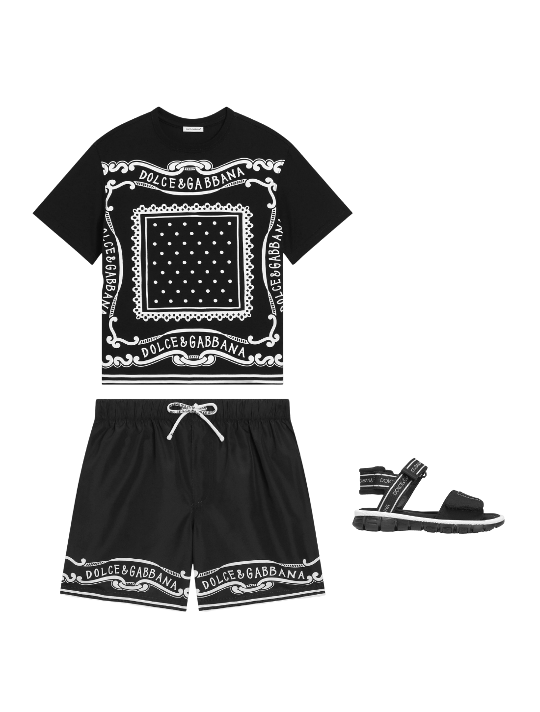 Introduce a touch of Italian elegance to your lad's wardrobe with the Dolce & Gabbana Boys Bandana Print Logo T-Shirt......