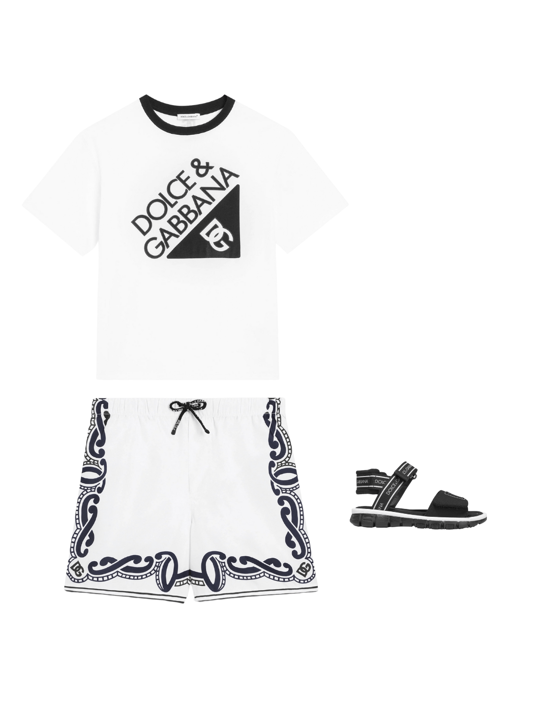 Introducing the Boys Bandana Print Swim Shorts in White by Dolce Gabbana, an exemplar of Italian craftsmanship designed for SS2025.......