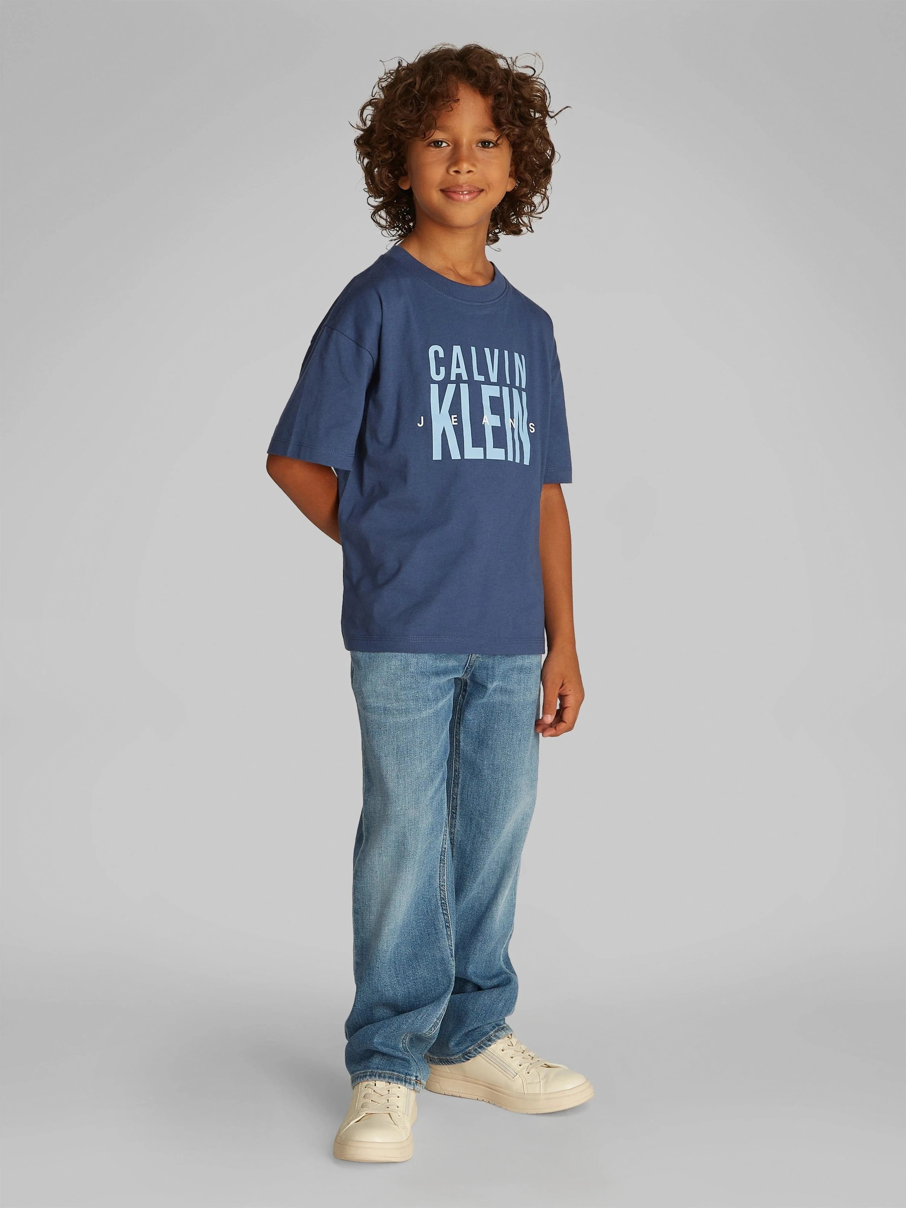 Introducing the Boys Bold CKJ Graphic T-Shirt in Blue from Calvin Klein — a quintessential addition to any young trendsetter's......
