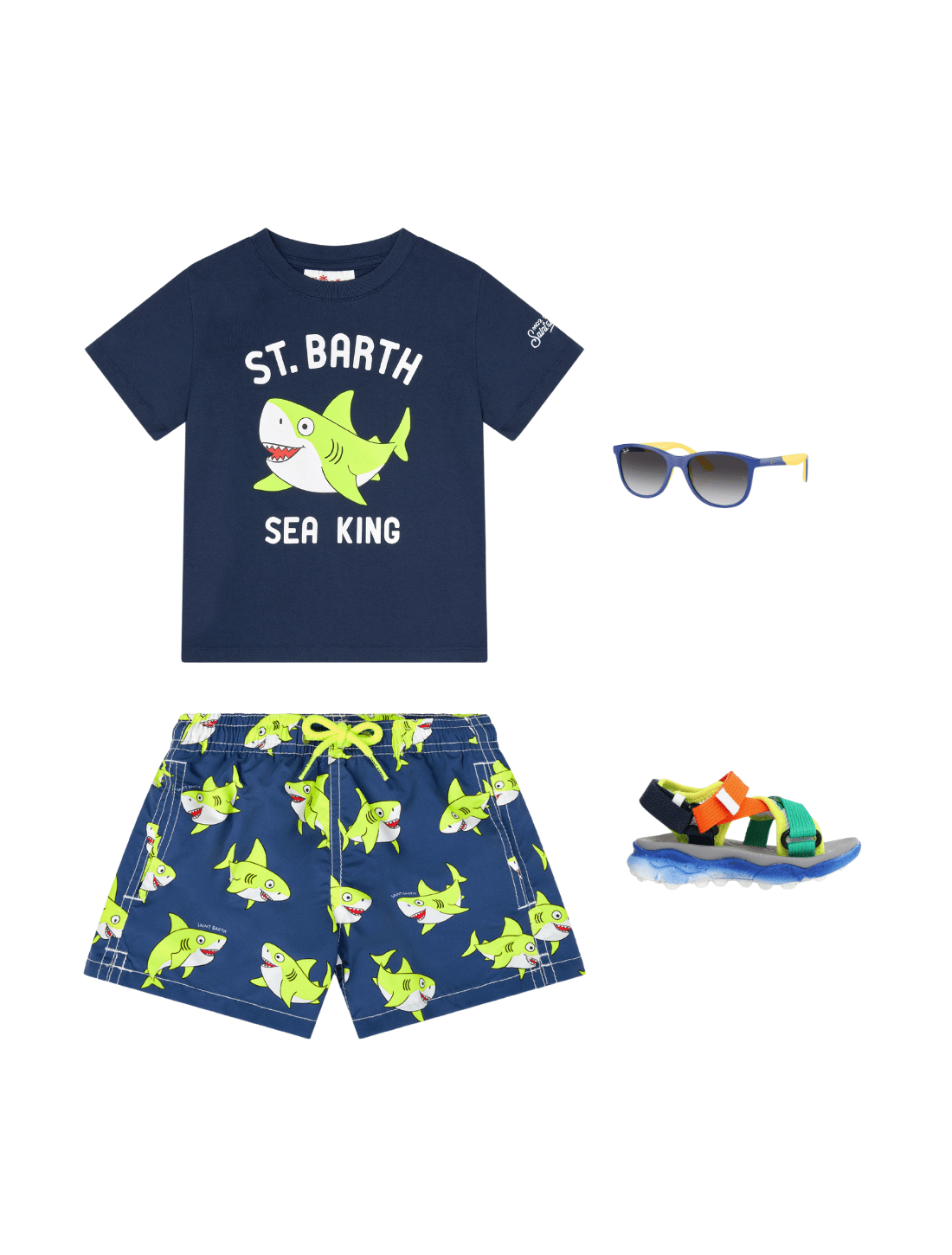 Introducing the Boys Cool Shark Swim Shorts in Navy by mc2 saint barth, an essential addition for every young gentleman’s......
