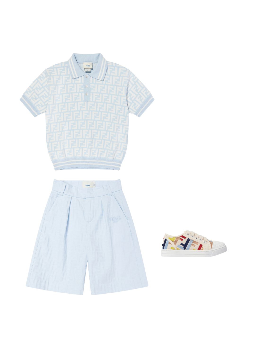 Introducing the Boys FF Piqué Knit Polo Shirt in Blue, crafted by Fendi Kids in Italy. This high-end designer piece......