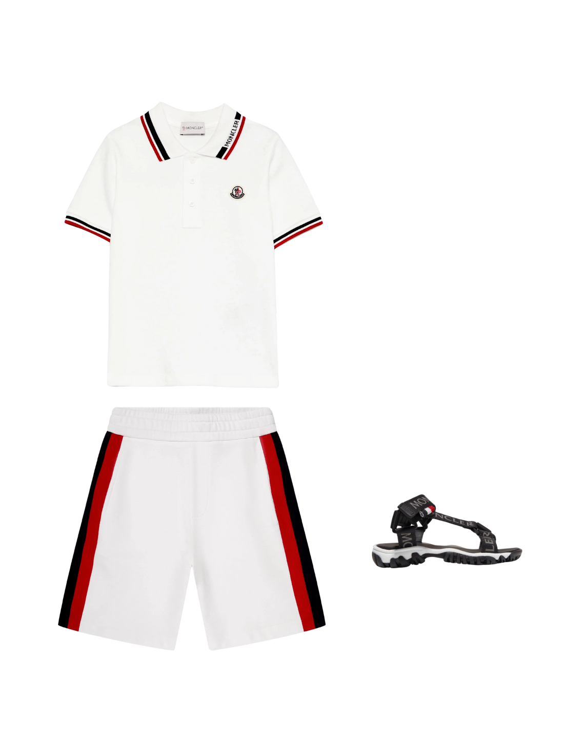 Moncler encapsulate innovation and passion in their beautifully crafted designs. This boys white cotton piqué polo showcases a distinctive tricolour......