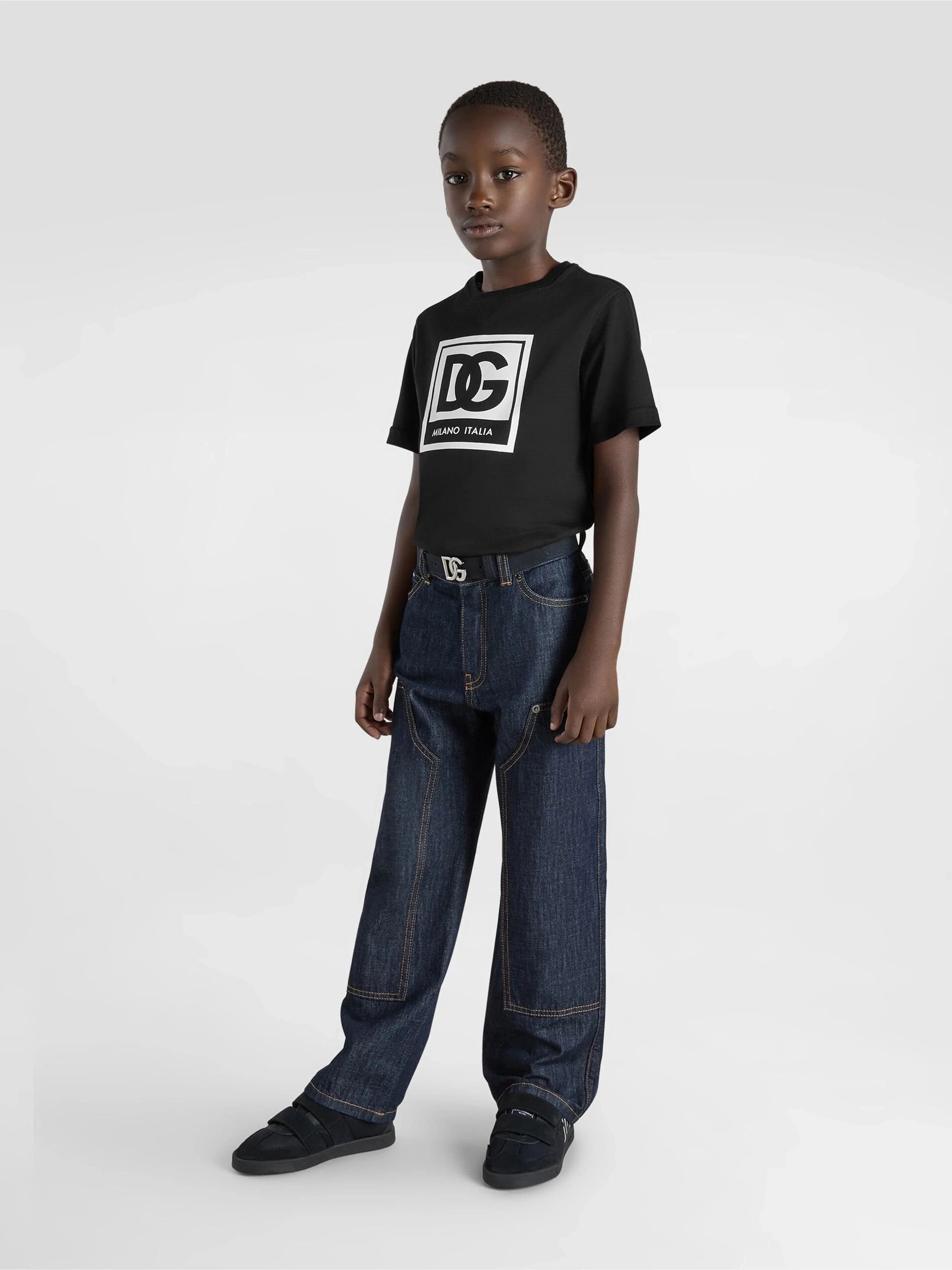 Introducing the exquisite Boys Logo Print T-Shirt in Black by Dolce & Gabbana—a quintessential addition to any discerning young wardrobe......