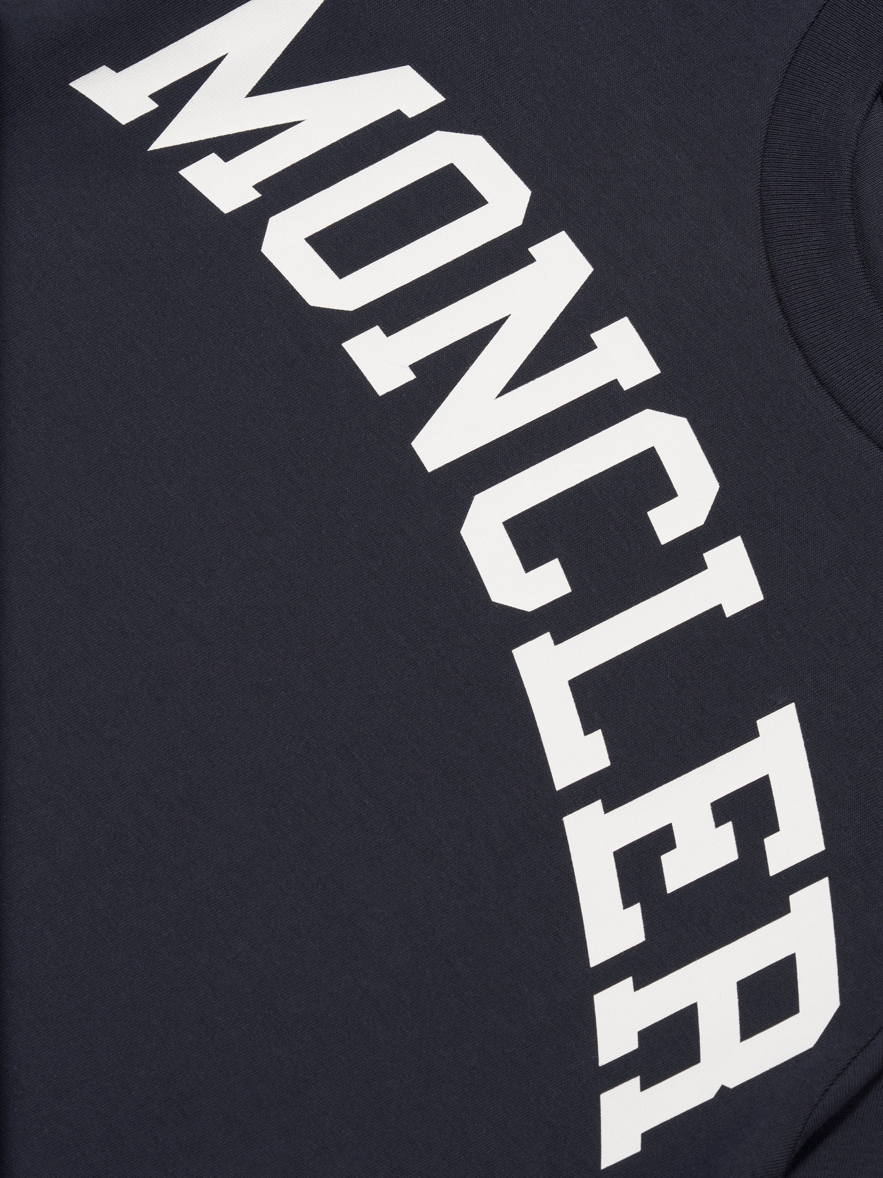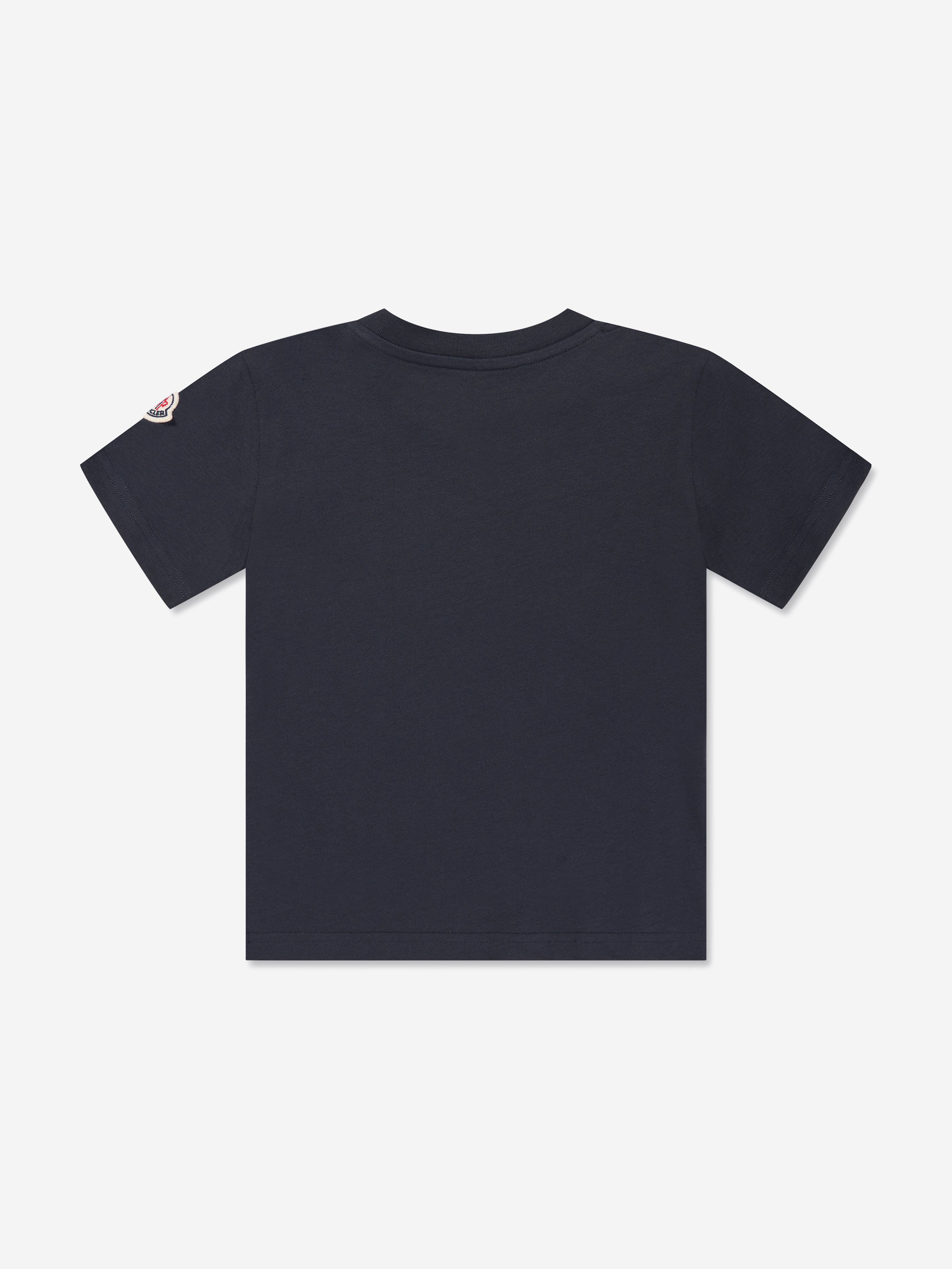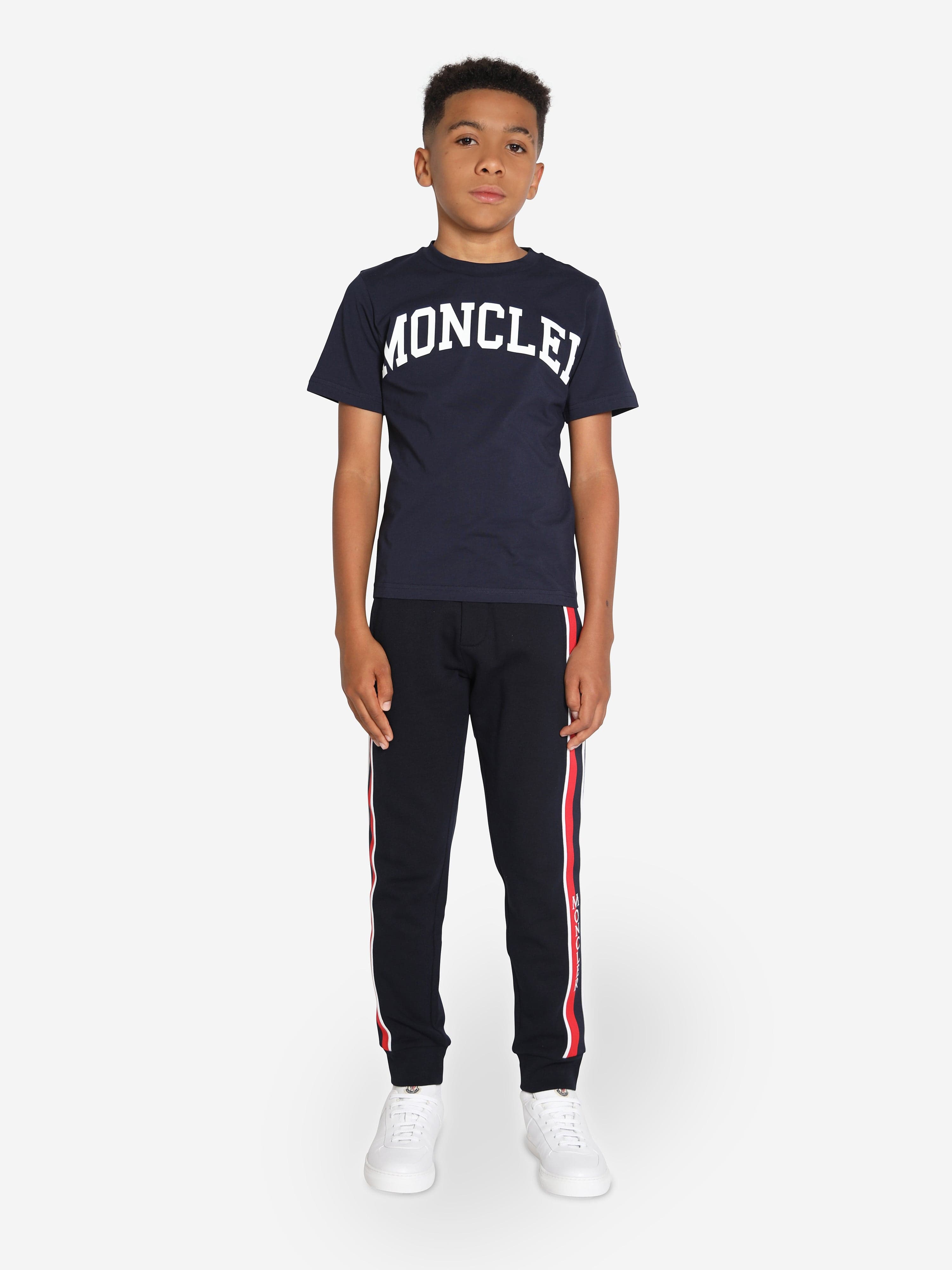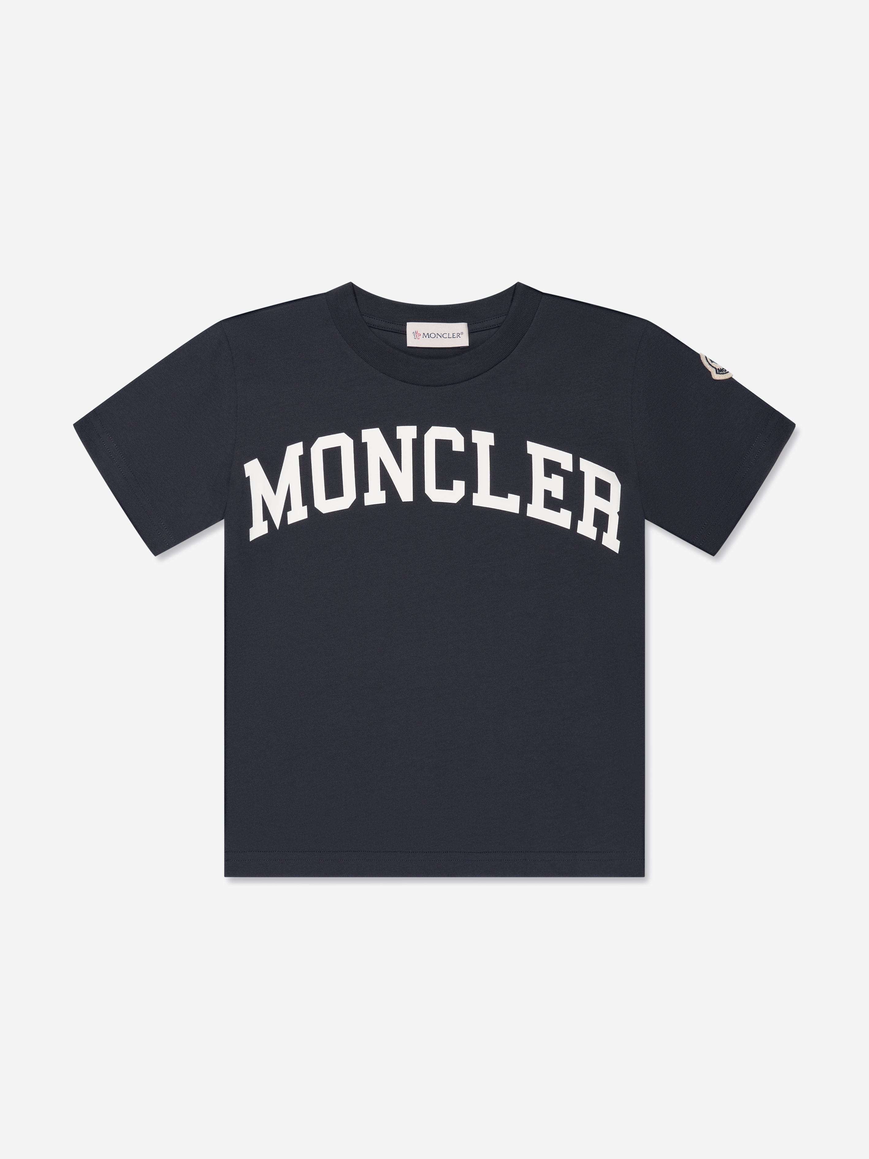 Varsity aesthetics meets Alpine vibes for this kids navy blue t-shirt from Moncler. Crafted from a soft and smooth cotton......