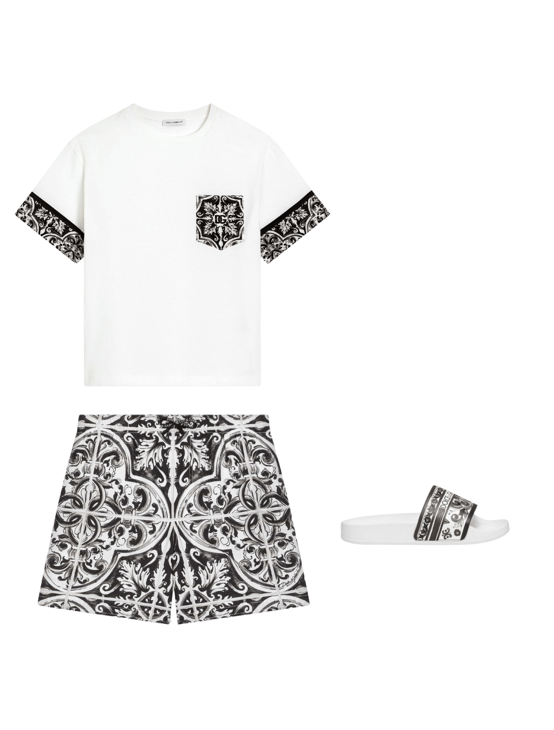 Dive into sophistication with Dolce & Gabbana's Boys Majolica Print Swim Shorts in Black, a quintessential addition for AW2025. Expertly......