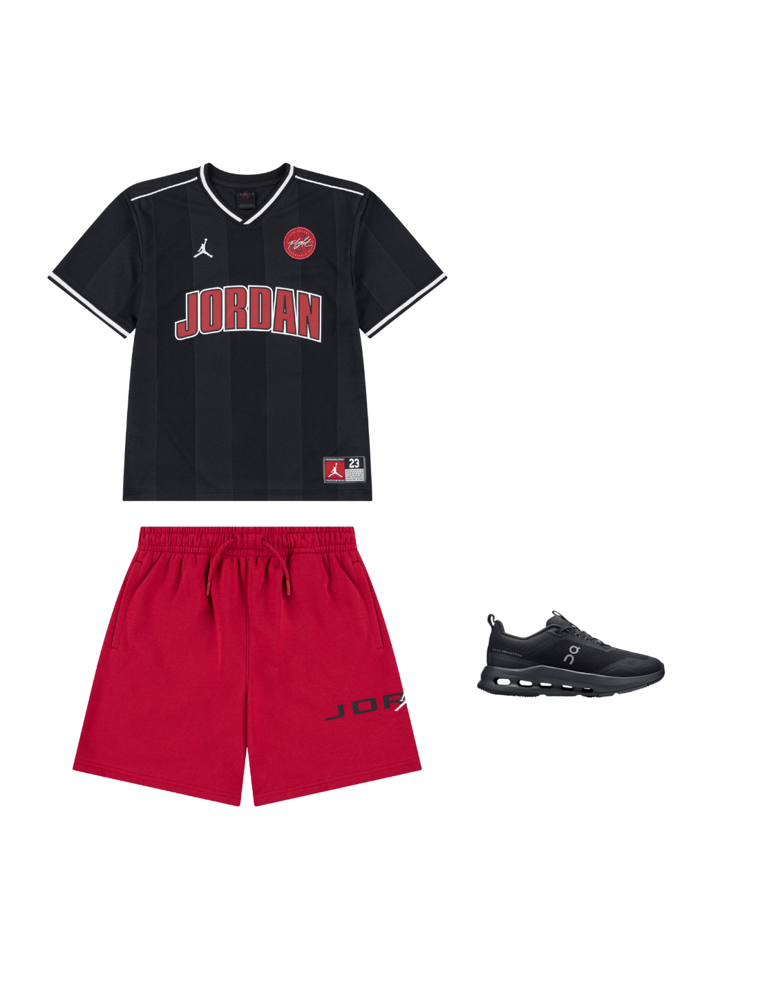 Introducing the Boys MJ Stretch HBR Fleece Shorts in Red by Jordan, an essential addition to your young trendsetter's wardrobe......