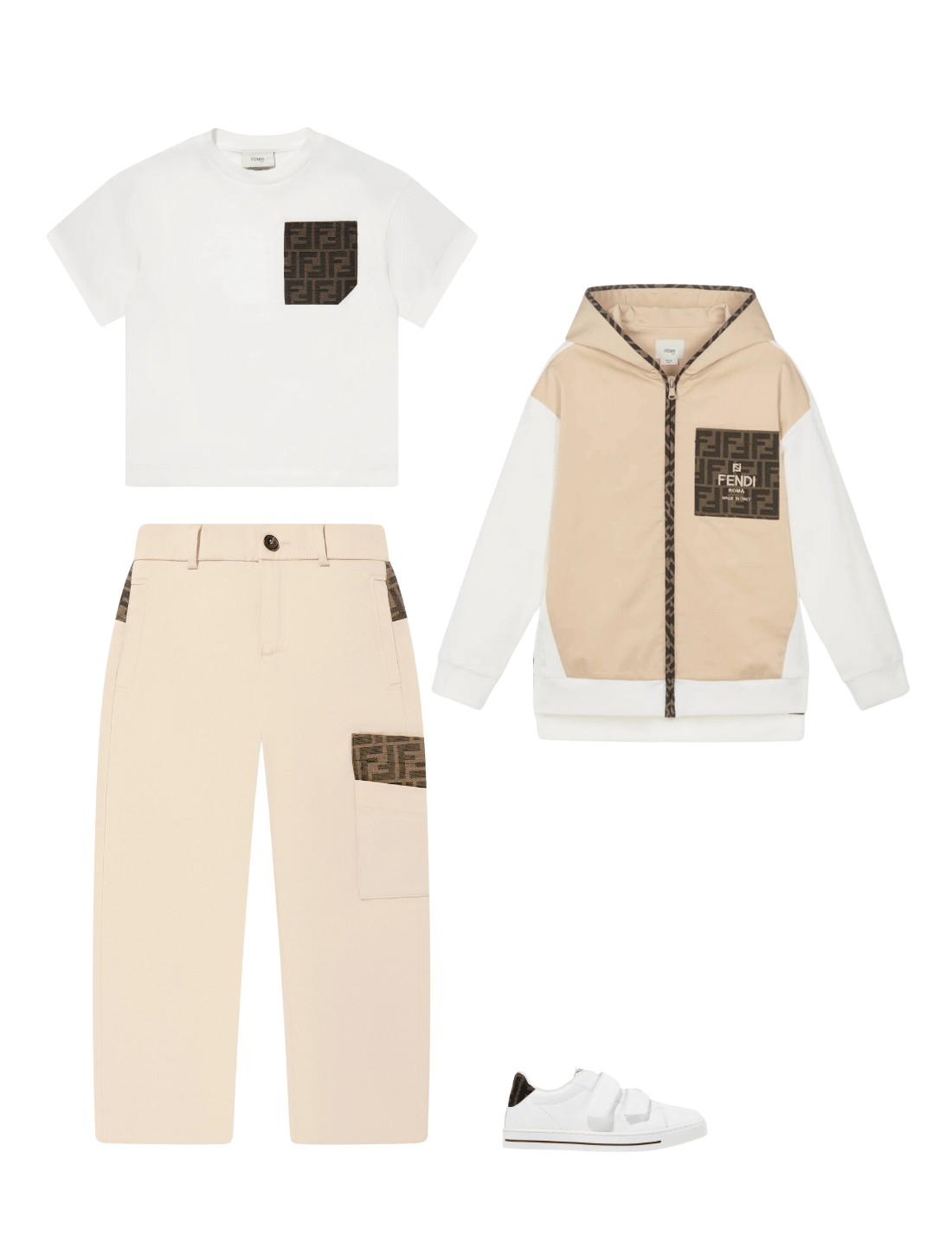 Introducing the exquisitely crafted Boys Stretch Gabardine Zip Up Top in Beige from Fendi Kids – a luxurious addition to......