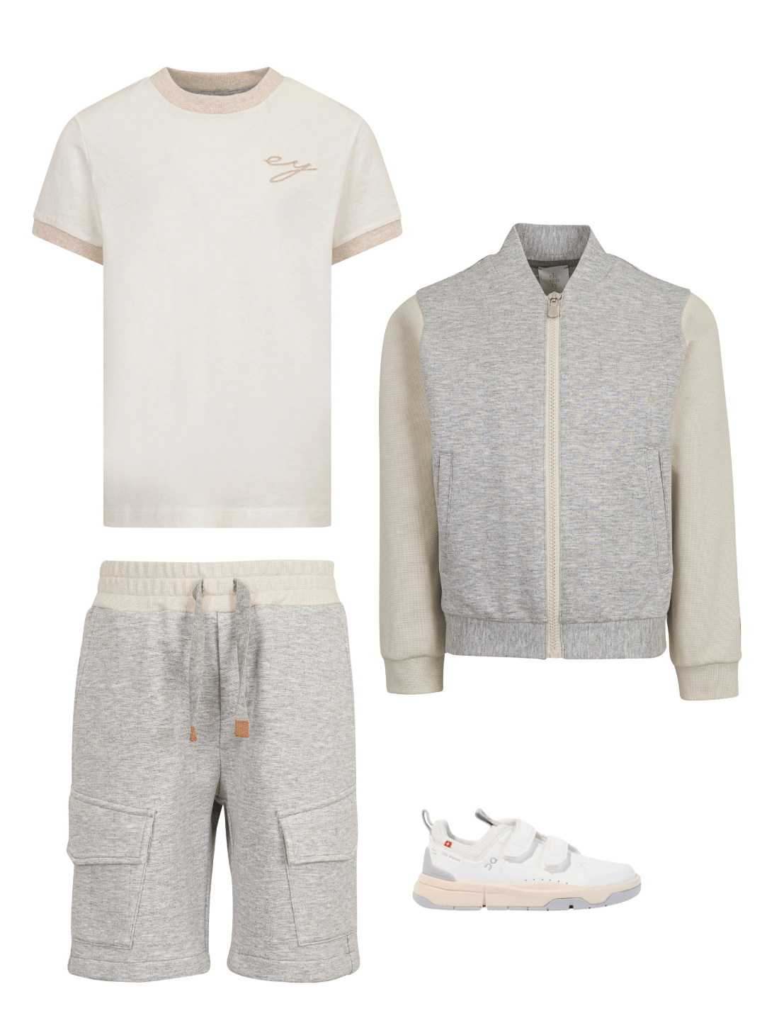 Elevate your young gentleman's wardrobe with Eleventy's Boys Zip Up Top in Grey, an essential for SS2025. Crafted with impeccable......