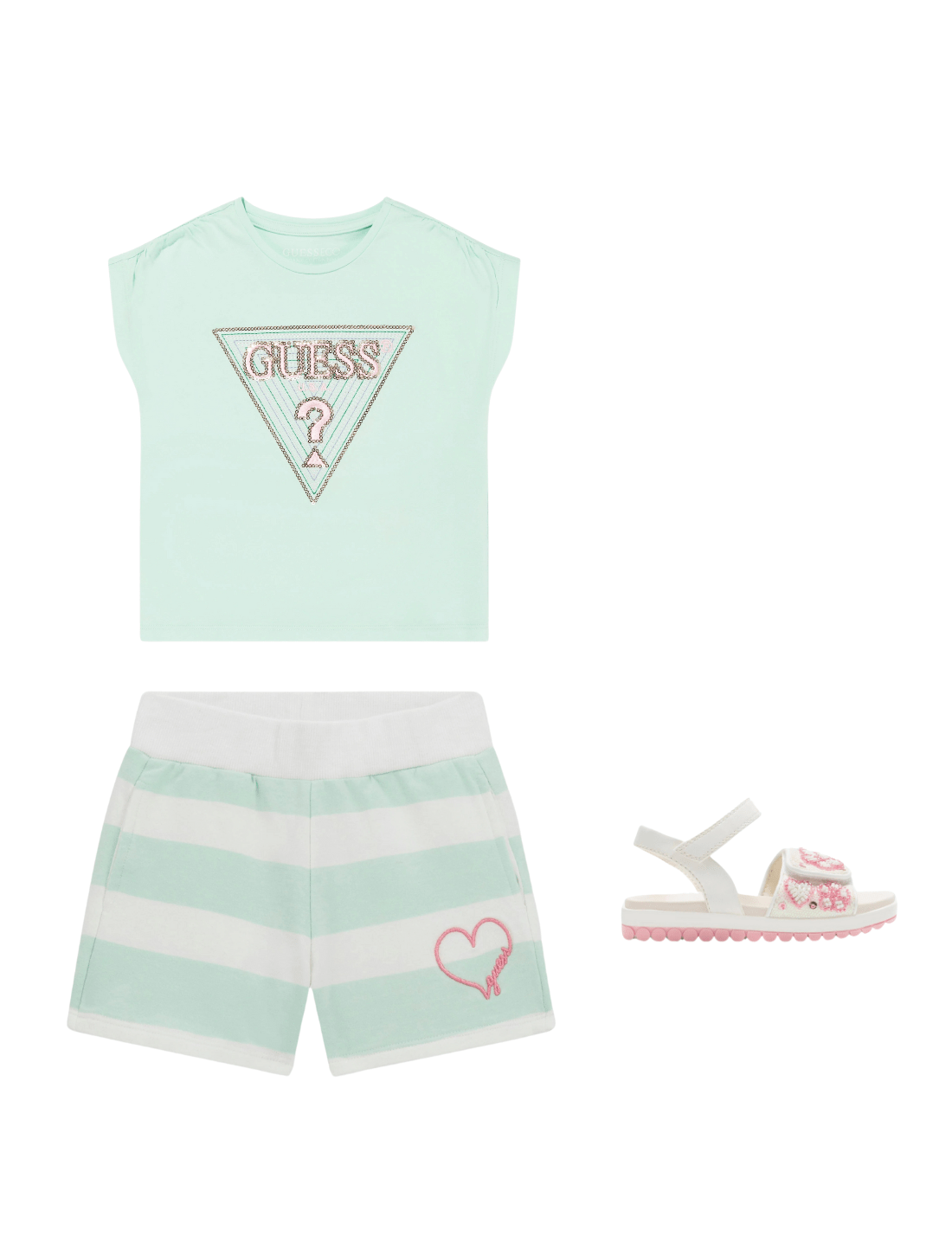 Introducing the quintessential SS2025 wardrobe staple from Guess: the Girls Batwing T-Shirt in a vibrant green. Melding elegance and playfulness,......