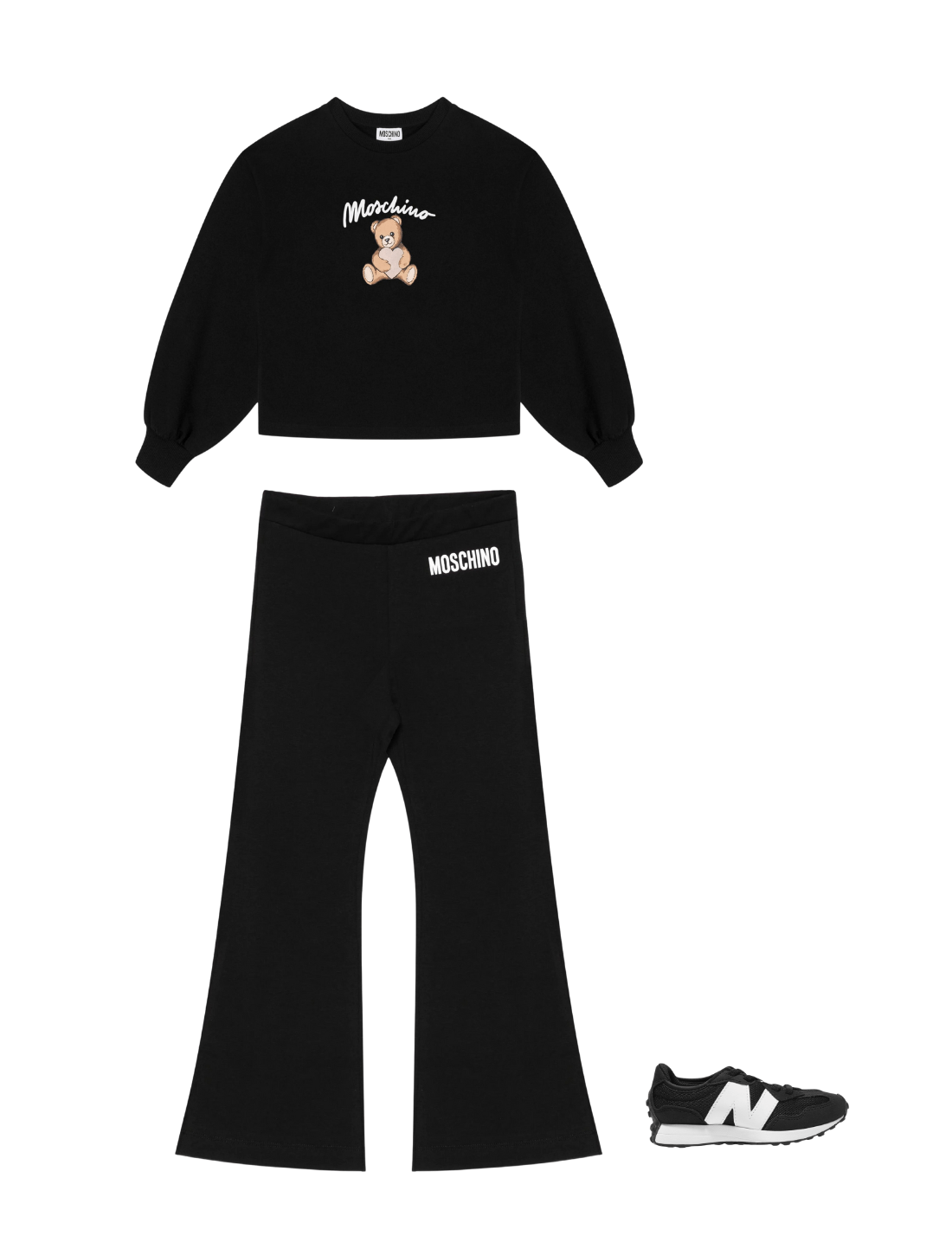 Introducing the exquisite Girls Bell Bottom Joggers in Black by Moschino Kids, a quintessential addition to any young lady's wardrobe.......