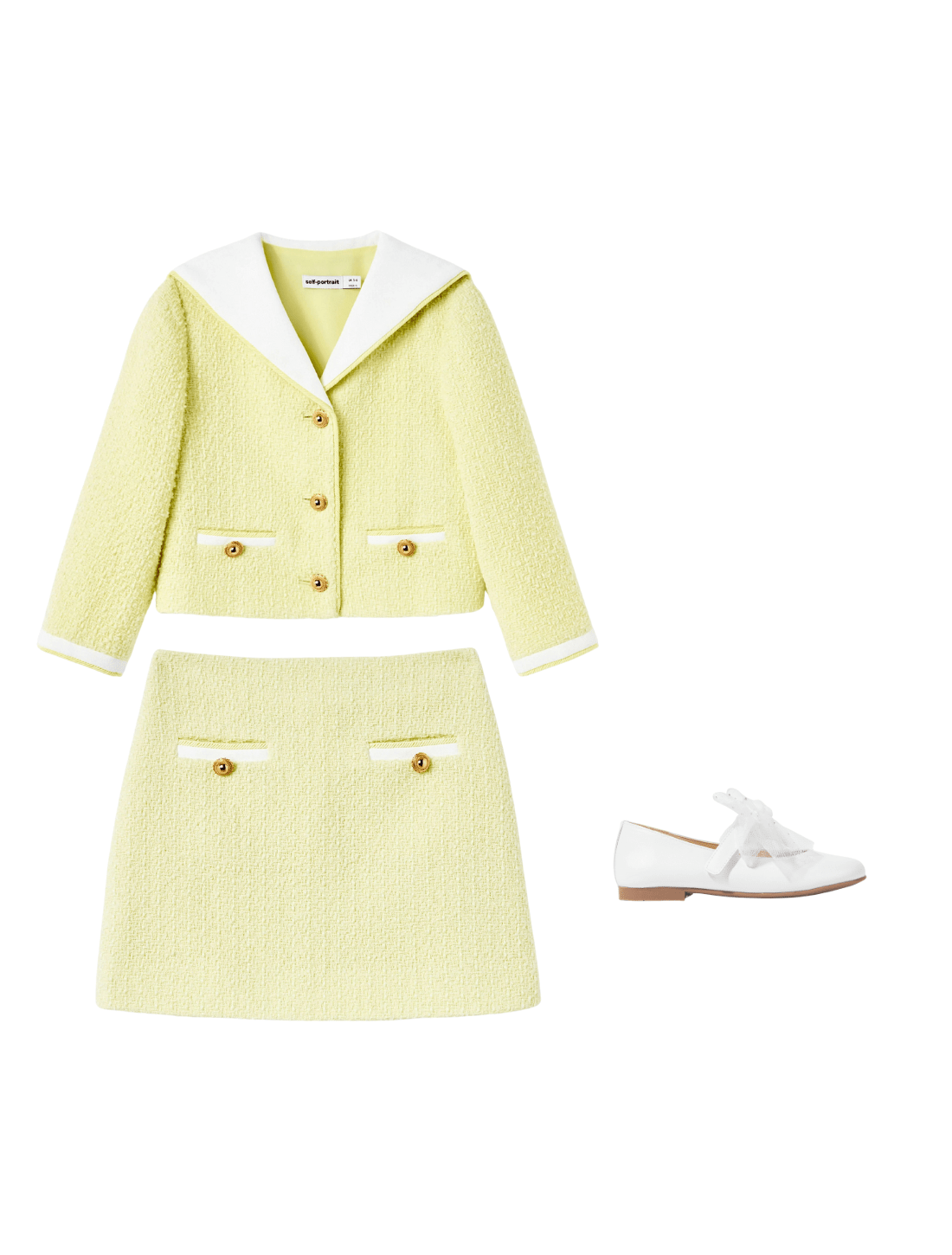 Self-Portrait combine timeless elegance with innovative formulas into traditional designs. This girls yellow bouclé skirt is reflective of the label's......