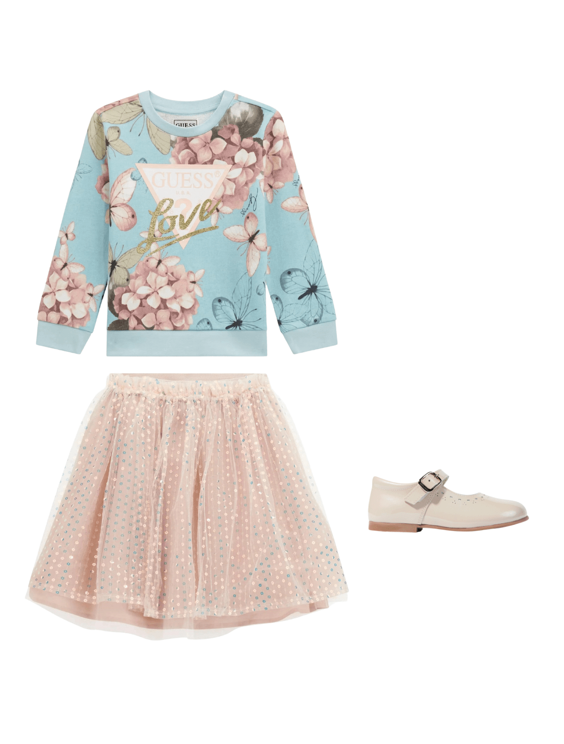 Discover the enchanting Girls Butterfly Collage Sweatshirt in Blue by Guess—a quintessential SS2025 wardrobe staple brimming with whimsy and flair.•......