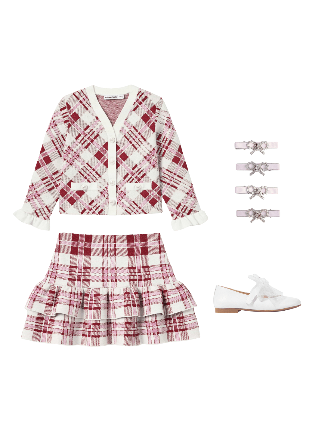 Self Portrait reinterpret vintage archives into stylish everyday pieces. This girls burgundy red check cardigan is woven from a beautiful......