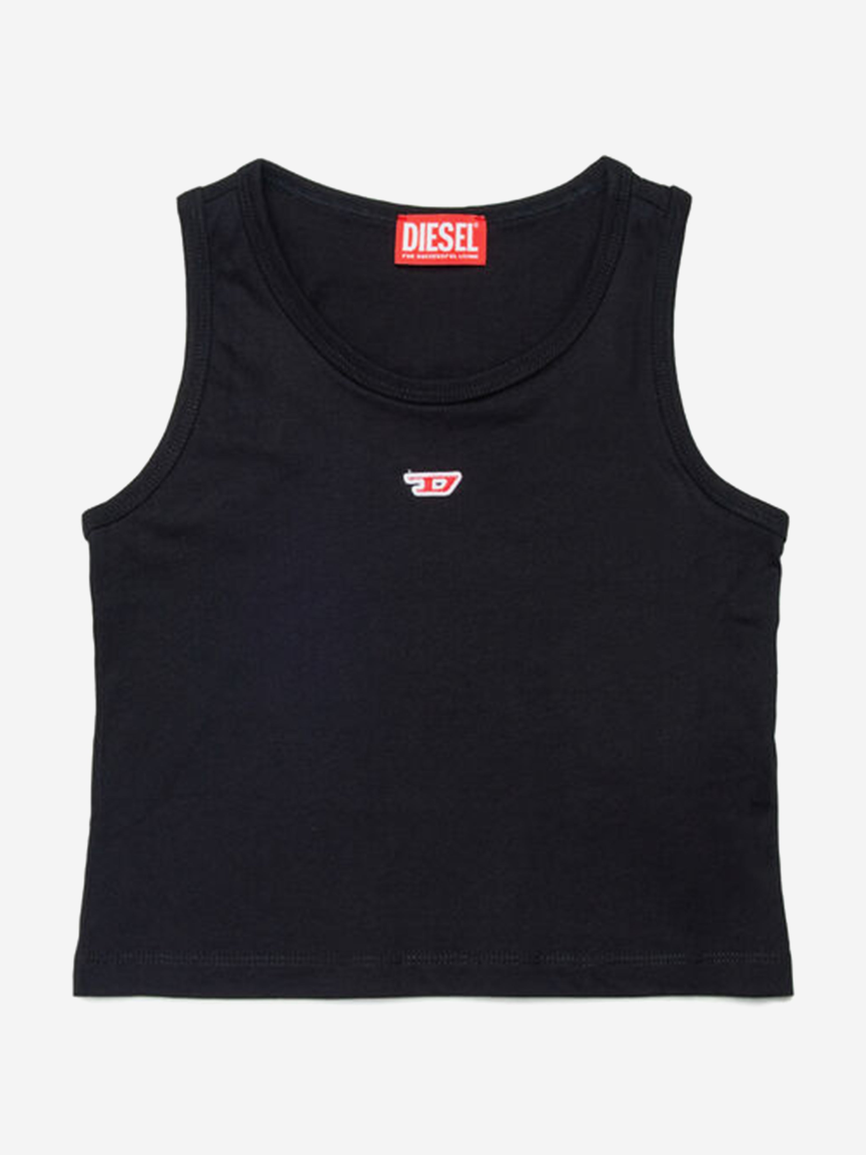 Introducing the Girls D Logo Sleeveless Top in Black by Diesel, a quintessential staple for SS2025 that merges style with......