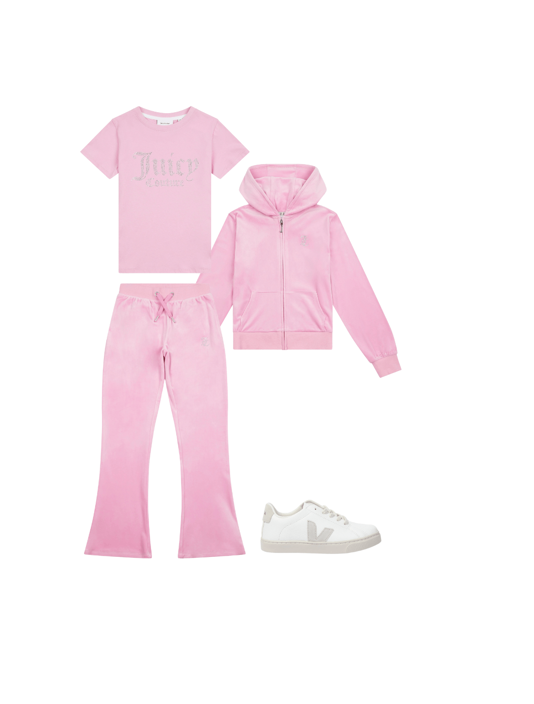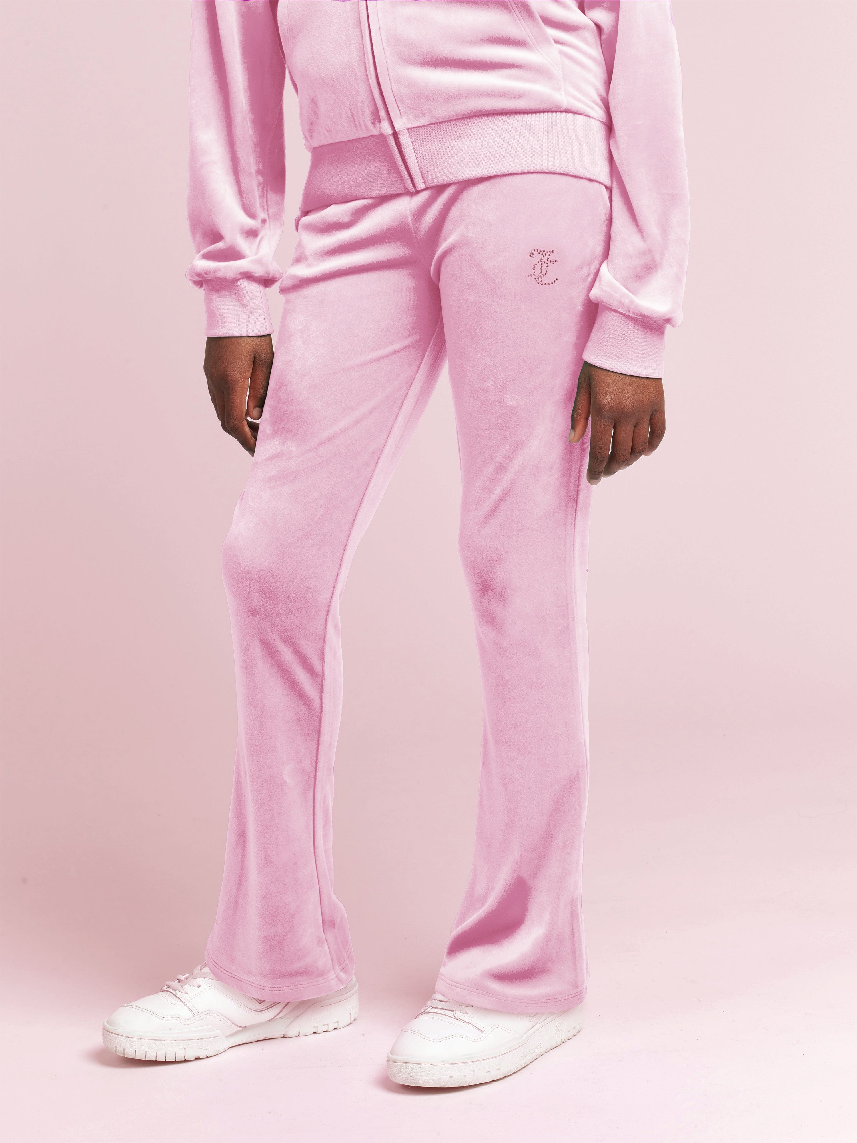 Juicy Couture incorporate high quality detail and unparalleled glamour into their casual aesthetics. These girls diamante bootcut joggers are reflective......