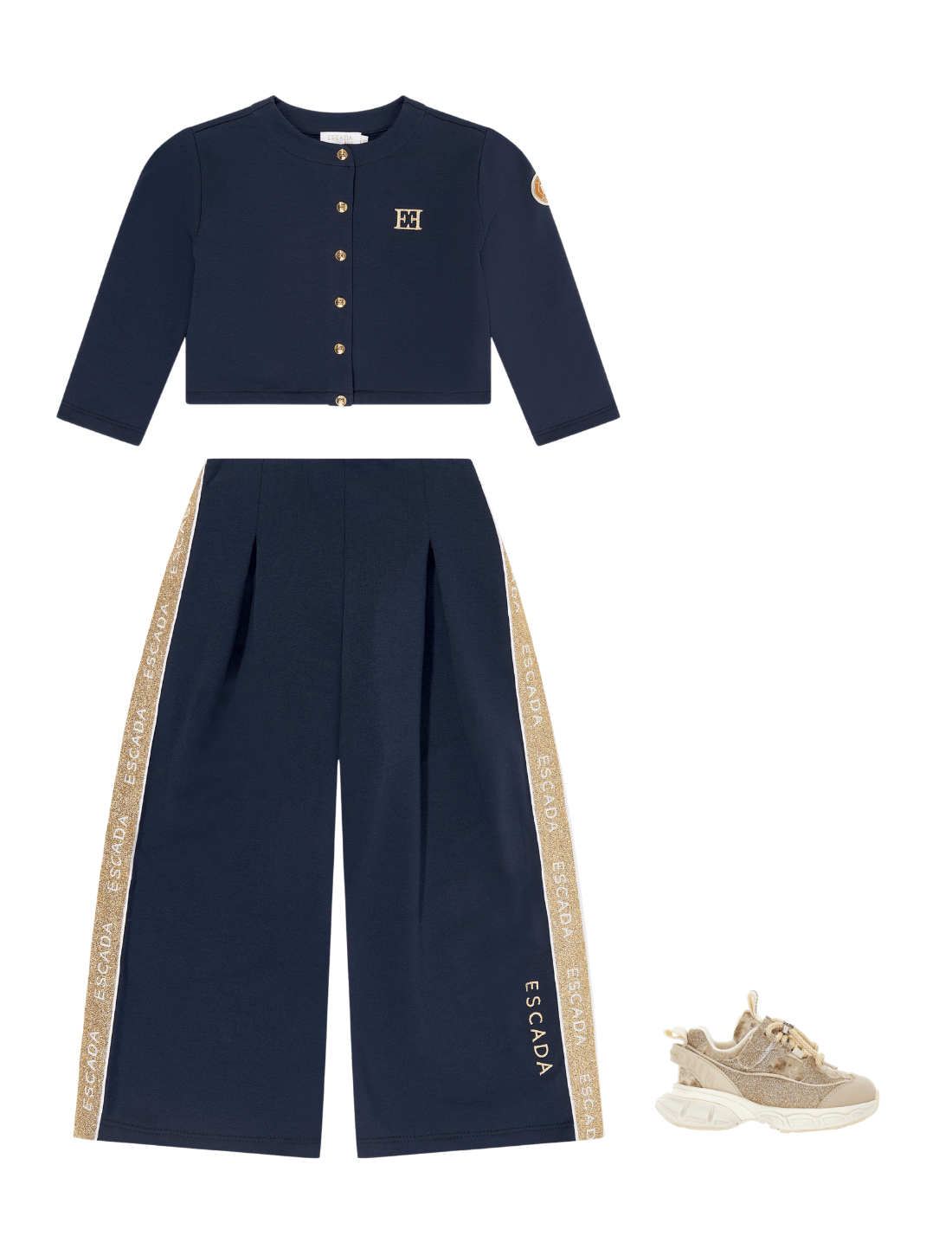 German heritage luxury label Escada embody modern innovation with timeless elegance. This girls navy jacket embodies a striking display. •......