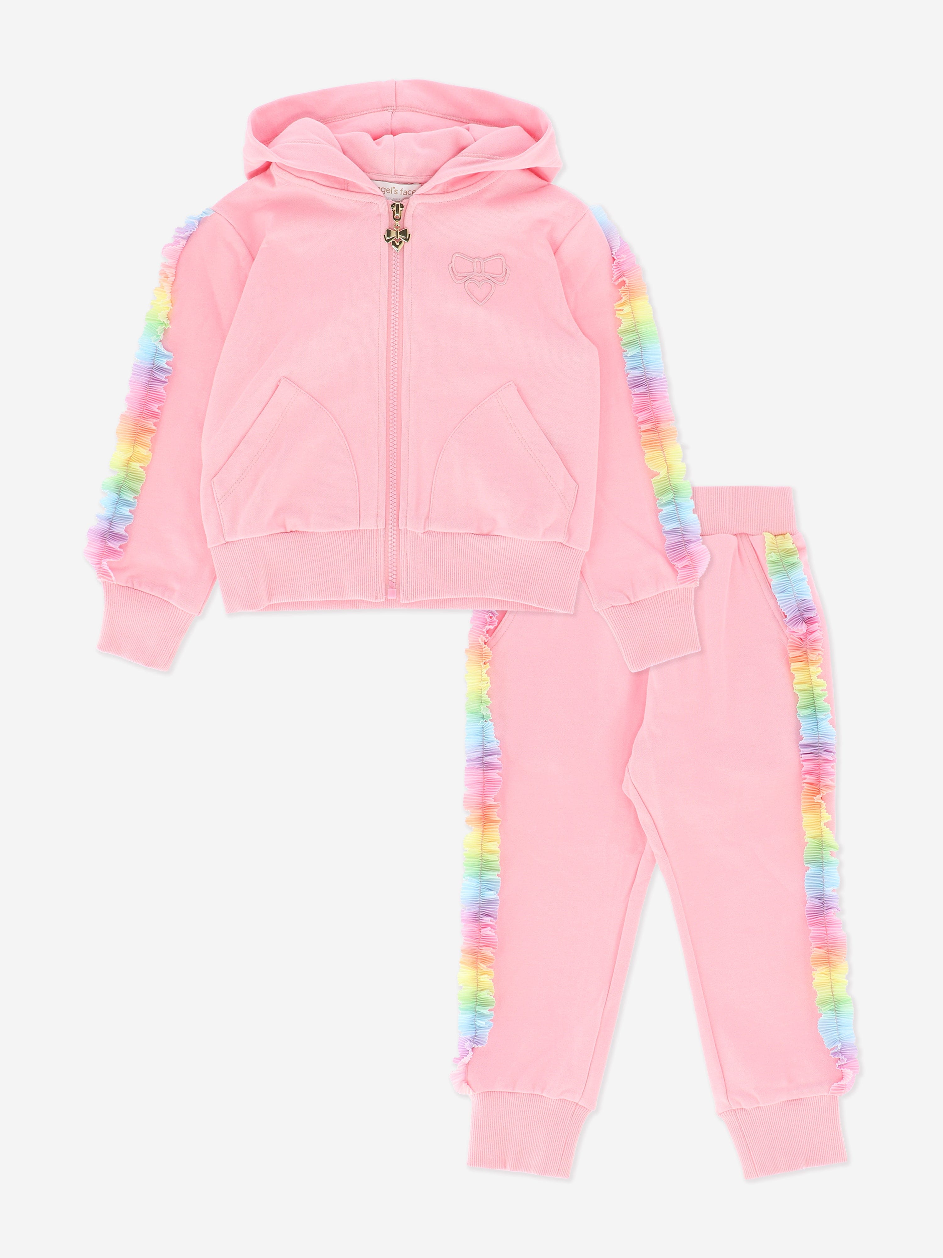 Indulge your little one with the Girls Estella Rainbow Trim Tracksuit in Pink by Angels Face, an essential chic addition......