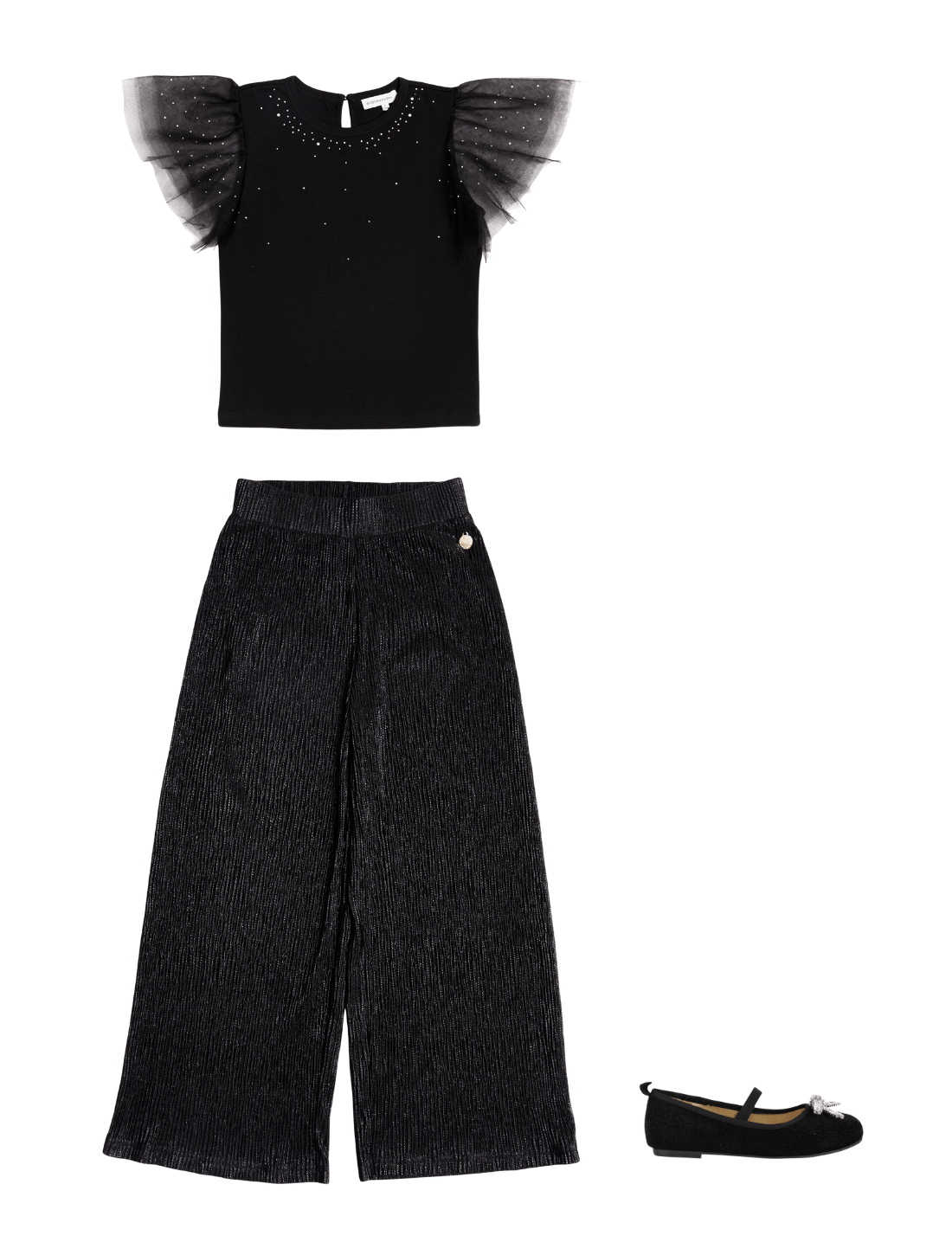 BCBGMAXAZRIA fuse vintage archives with modern materials. This girls black t-shirt embodies the label's passion for timeless classics. • Flare......