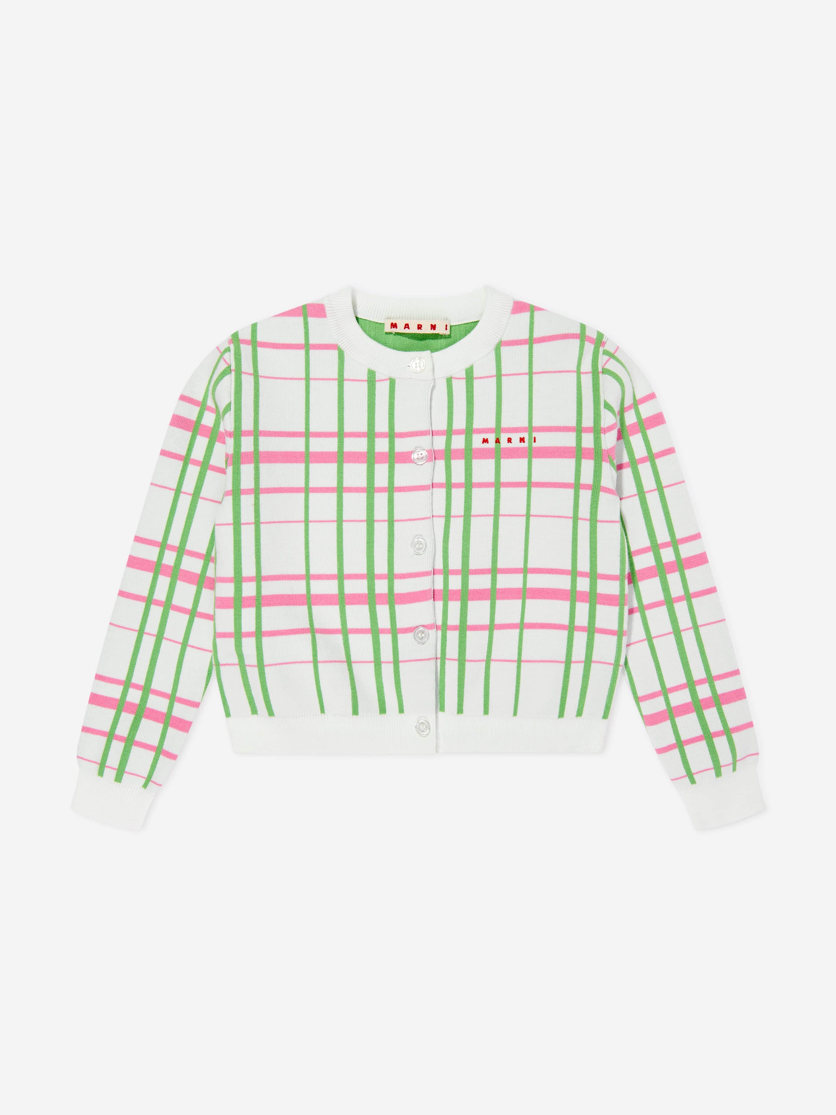 Marni's fresh invigorative perspective is embodied in this girls cardigan. Engineered in a viscose blend via shaved knit with Check......