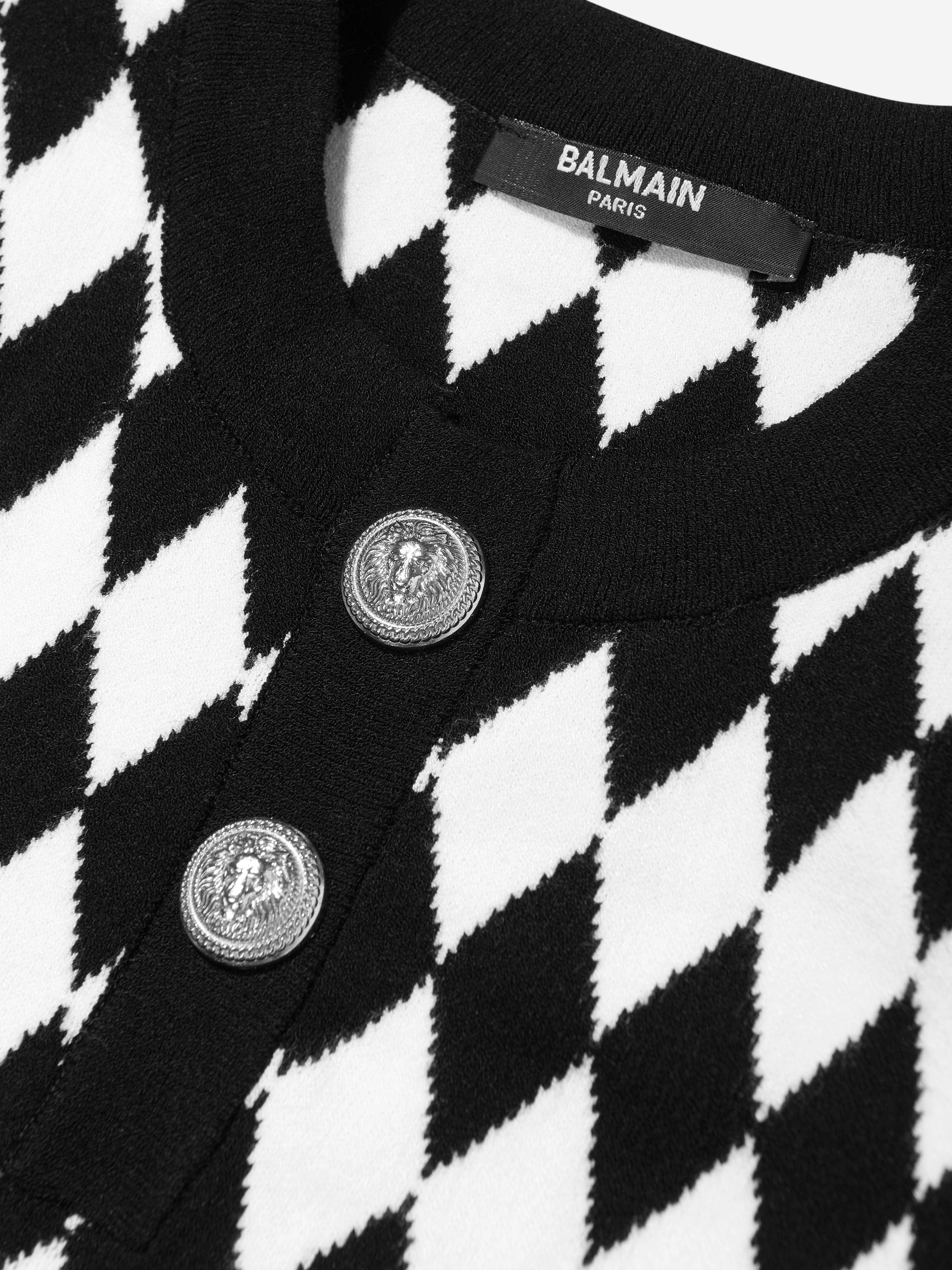 Balmain incorporate sleek, sophisticated silhouettes into their enigmatic abstracts. This girls black and white knit top captures the French label's......