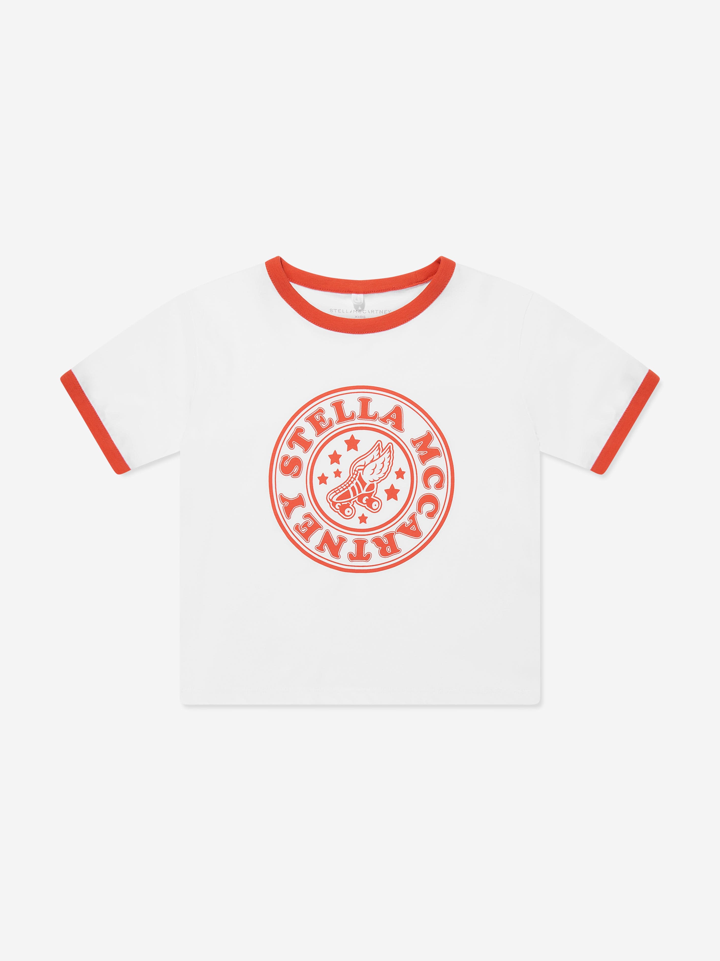 Introducing the Stella McCartney Girls Logo Print Cropped T-Shirt in pristine white, an essential addition for SS2025. Perfectly blending comfort......
