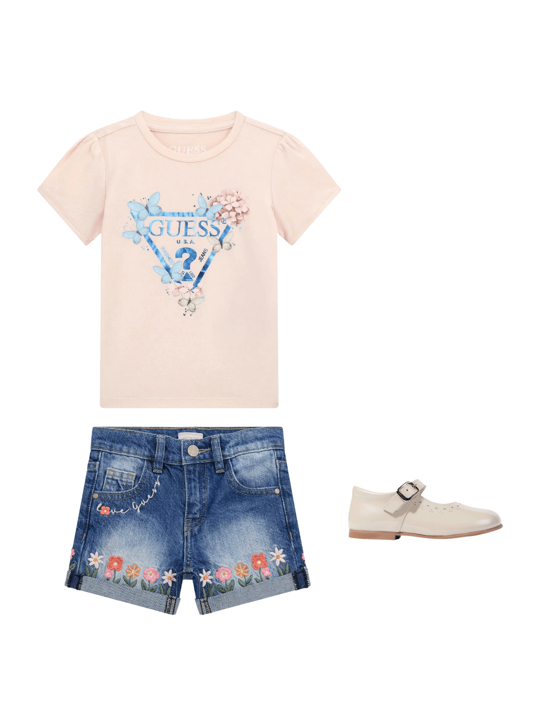Introducing the Girls Logo T-Shirt in Pink by Guess, an essential addition to any young fashionista's wardrobe for SS2025. Perfectly......