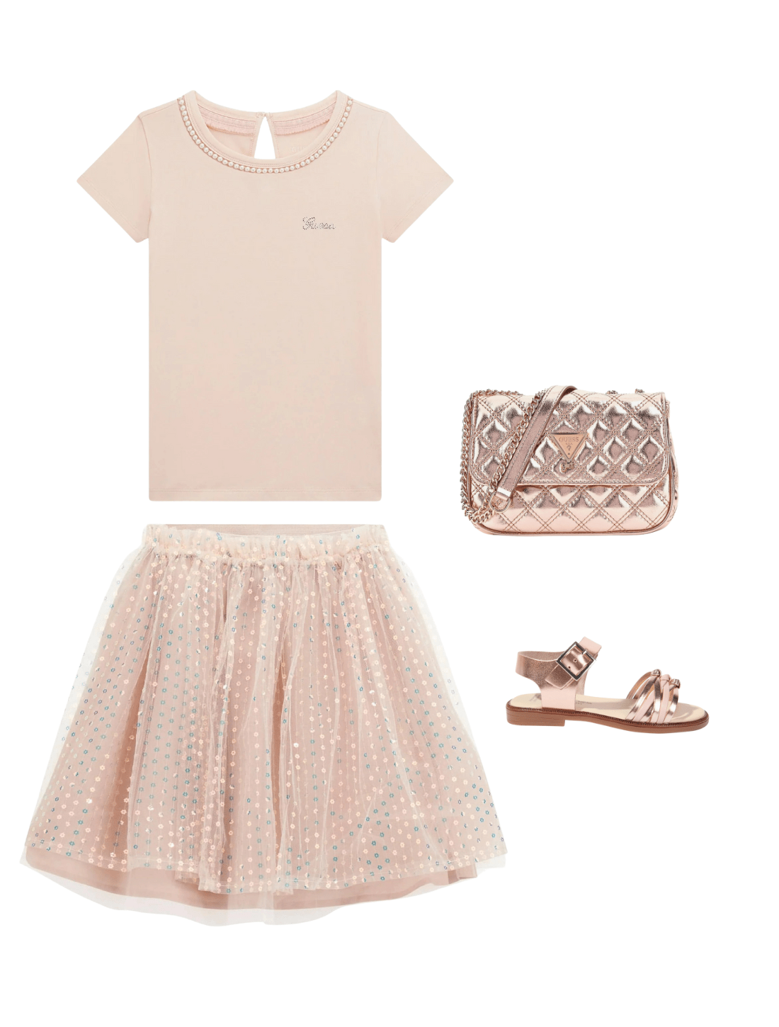 Introducing the quintessential addition to any young lady's wardrobe for SS2025: the Girls Logo T-Shirt with Pearls in Pink by......