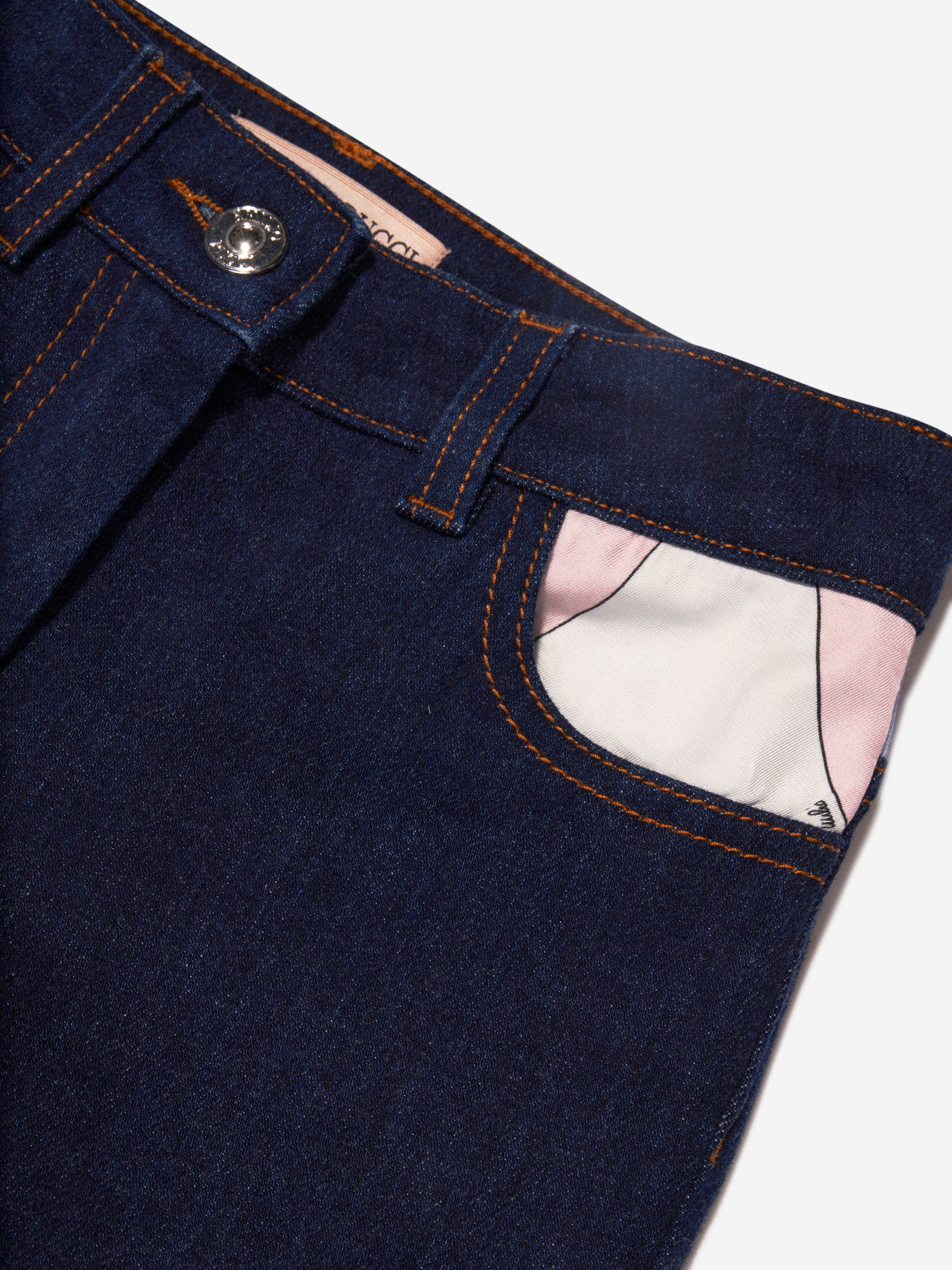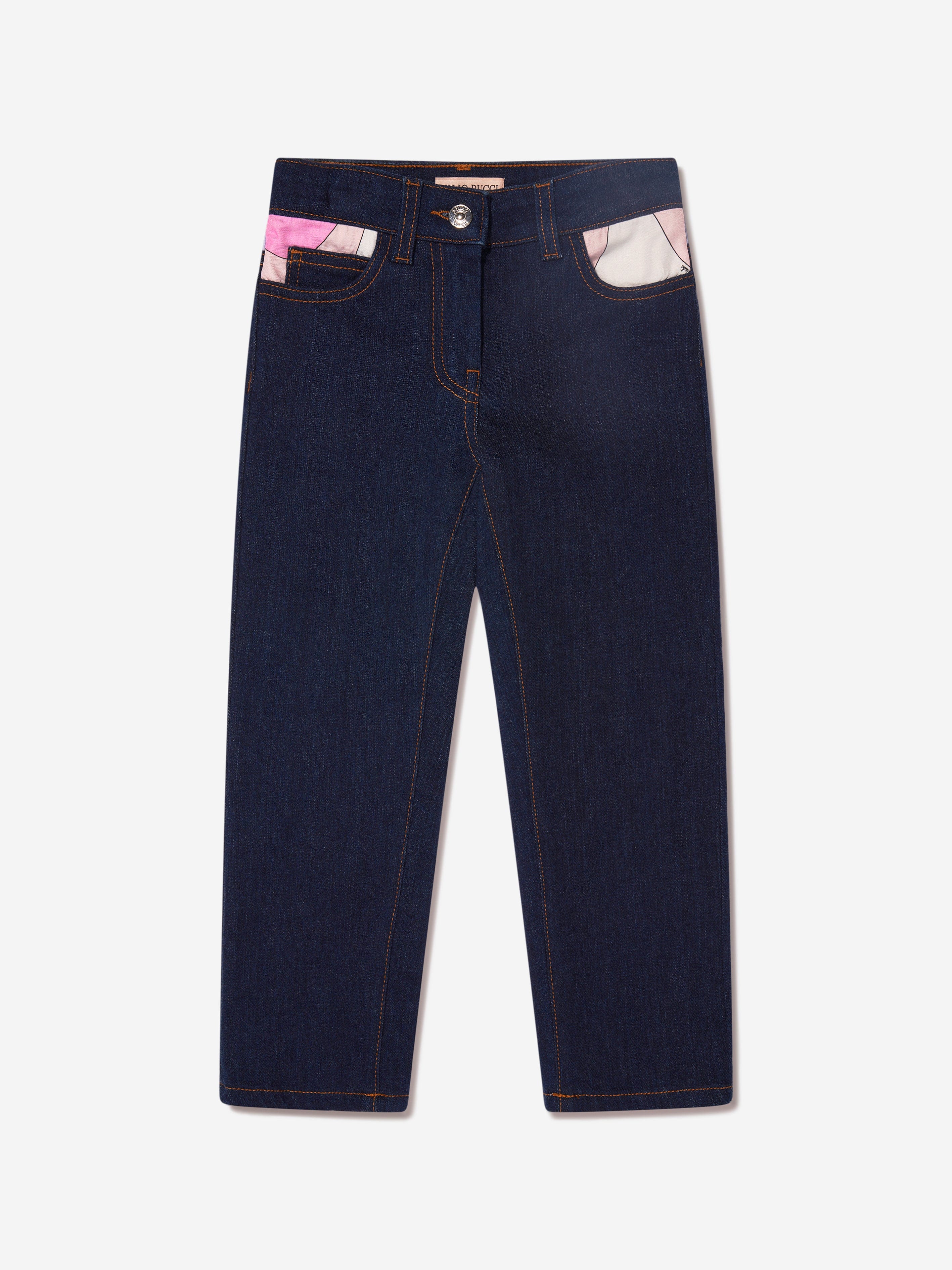 Introducing the Emilio Pucci Girls Marmo Pocket Jeans in Blue, an exquisite clothing piece guaranteed to brighten up your girl's......