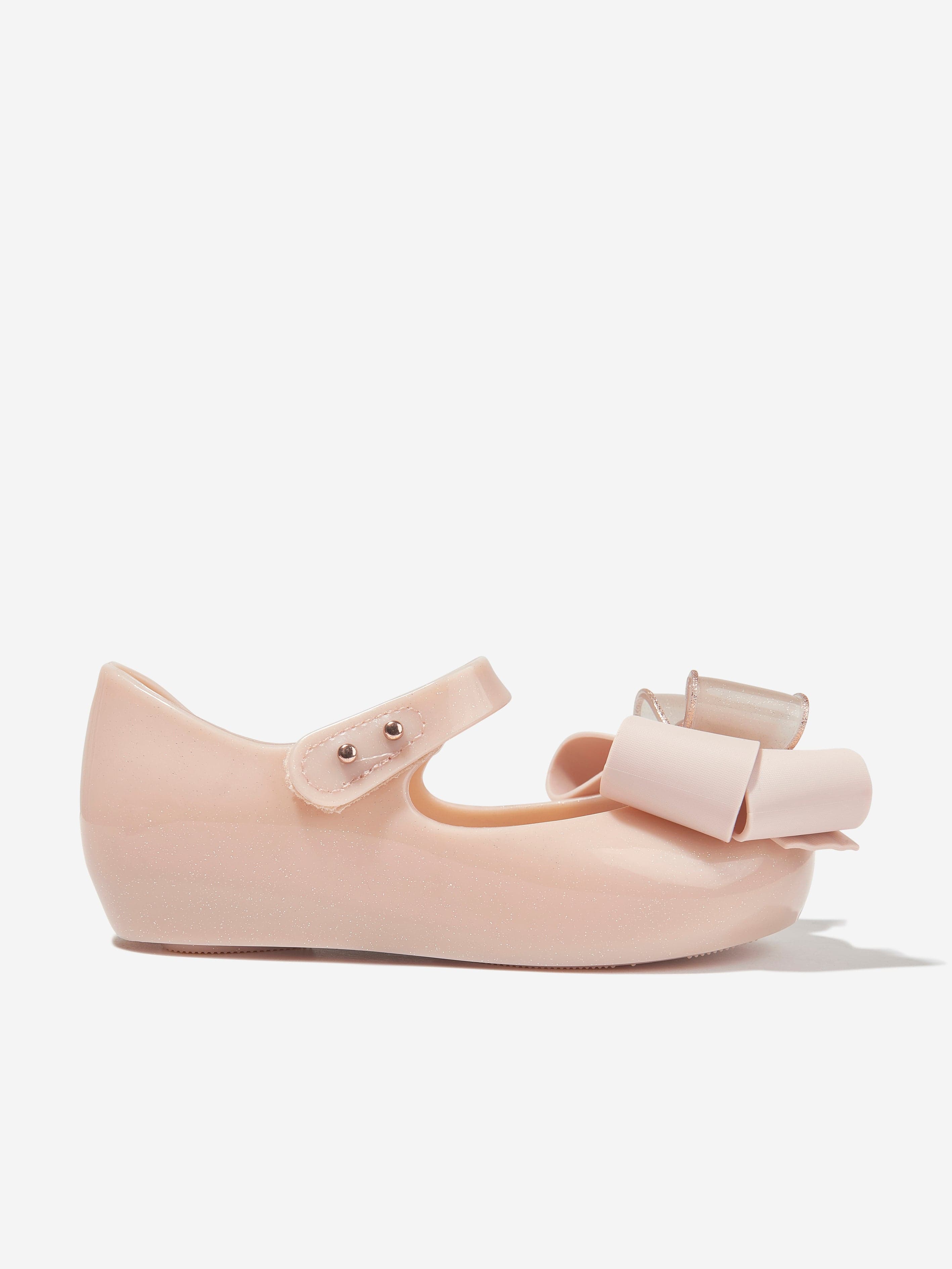 Introducing the Girls Mini Ultragirl Fab Bow Ballerinas in Pink from Mini Melissa. A high-end, luxury piece that is a......