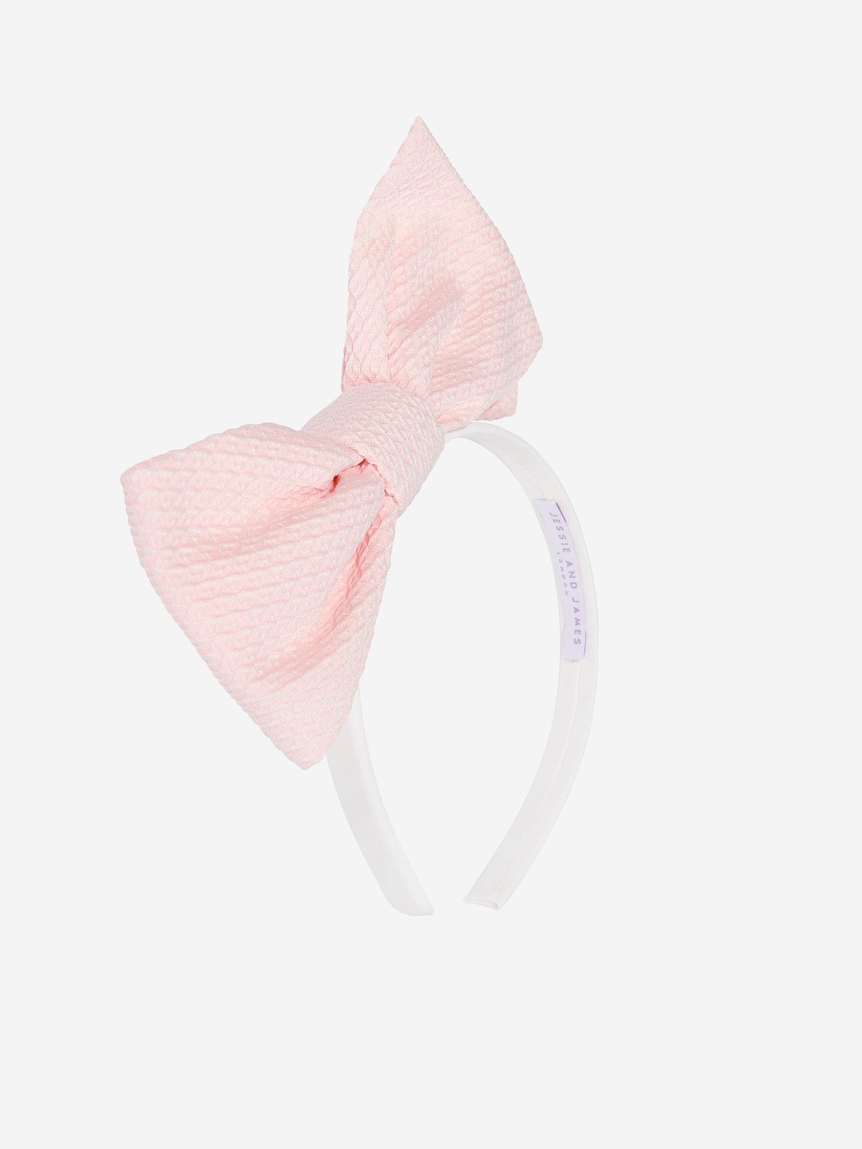 Discover the exquisite Girls Origami Dotty Jacquard Bow Headband in Pink by Jessie and James, an essential luxury for SS2025.......