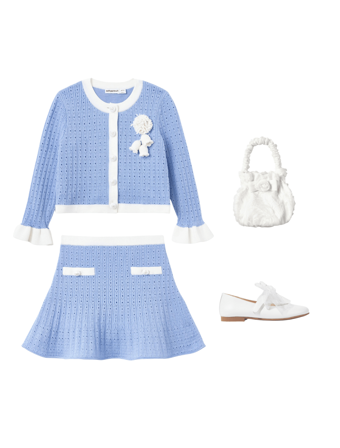 A brand with a passion for exquisite abstracts and high quality detailing. This girls blue pointelle cardigan captures the luxury......