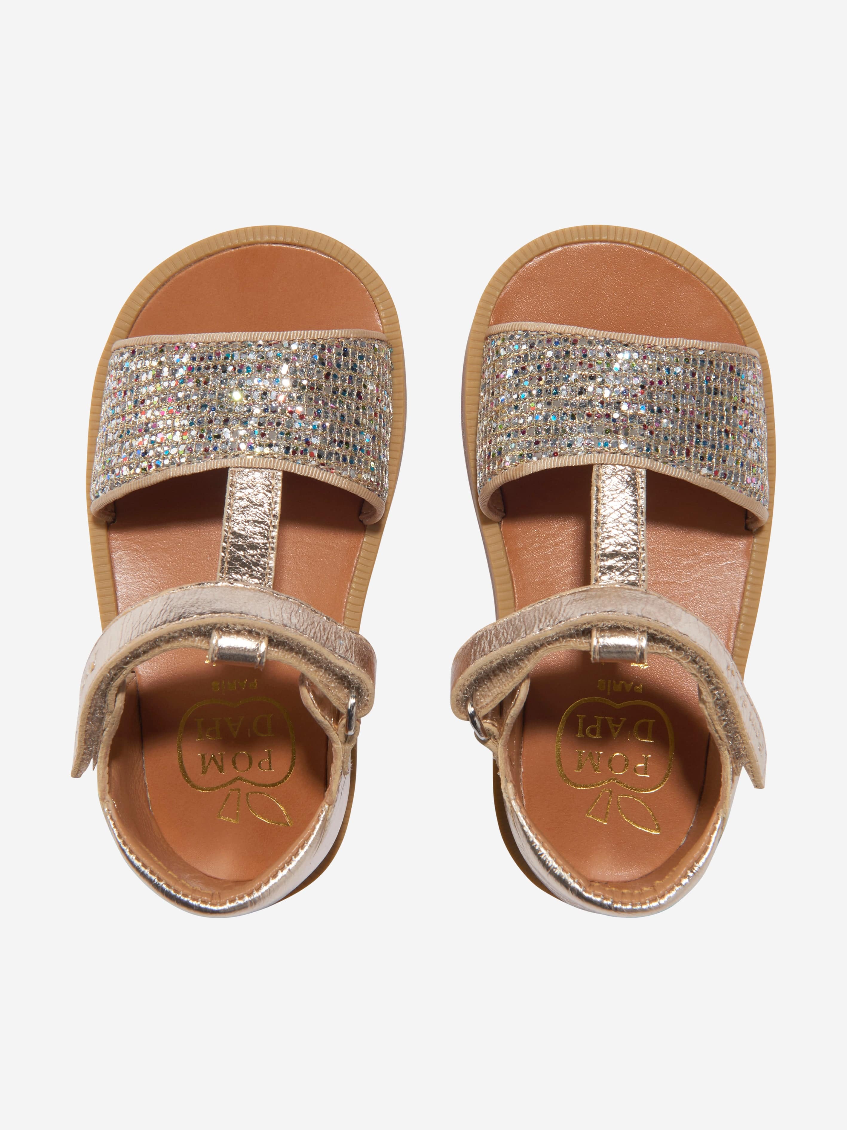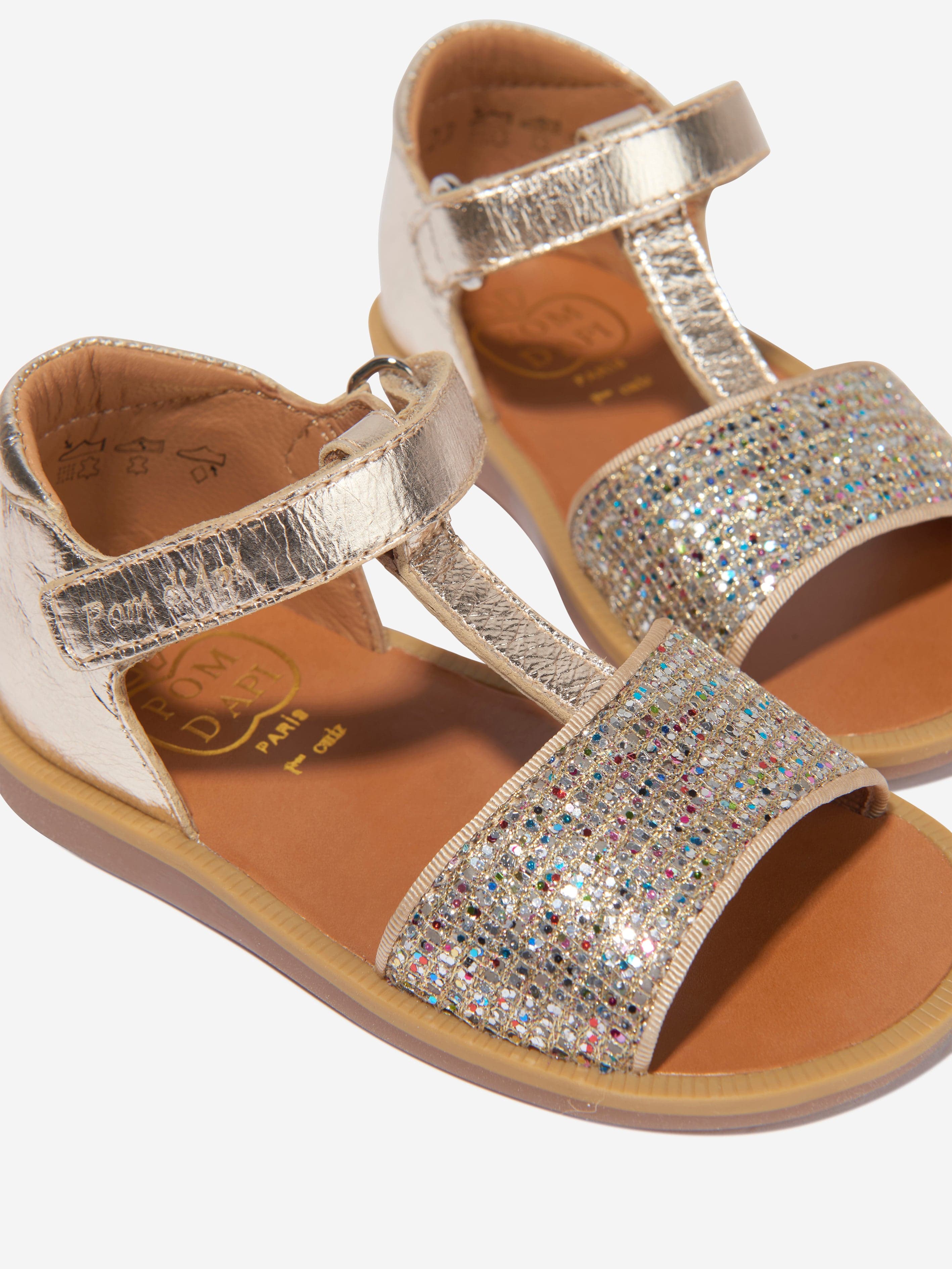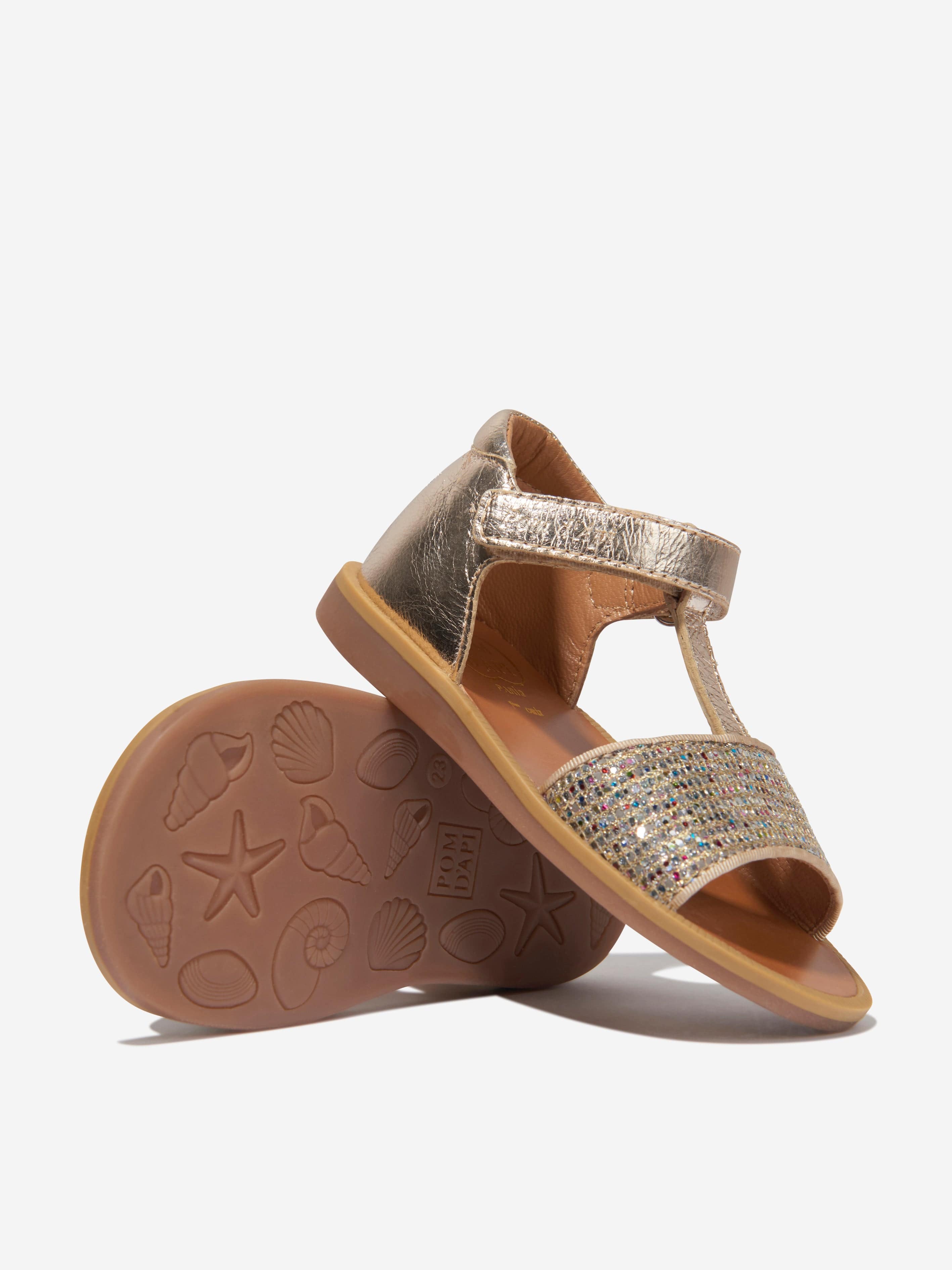 Introducing the sumptuous Girls Poppy Tao Easy Buckle Sandals in Gold by pomd api, a dazzling addition for SS2023. Crafted......