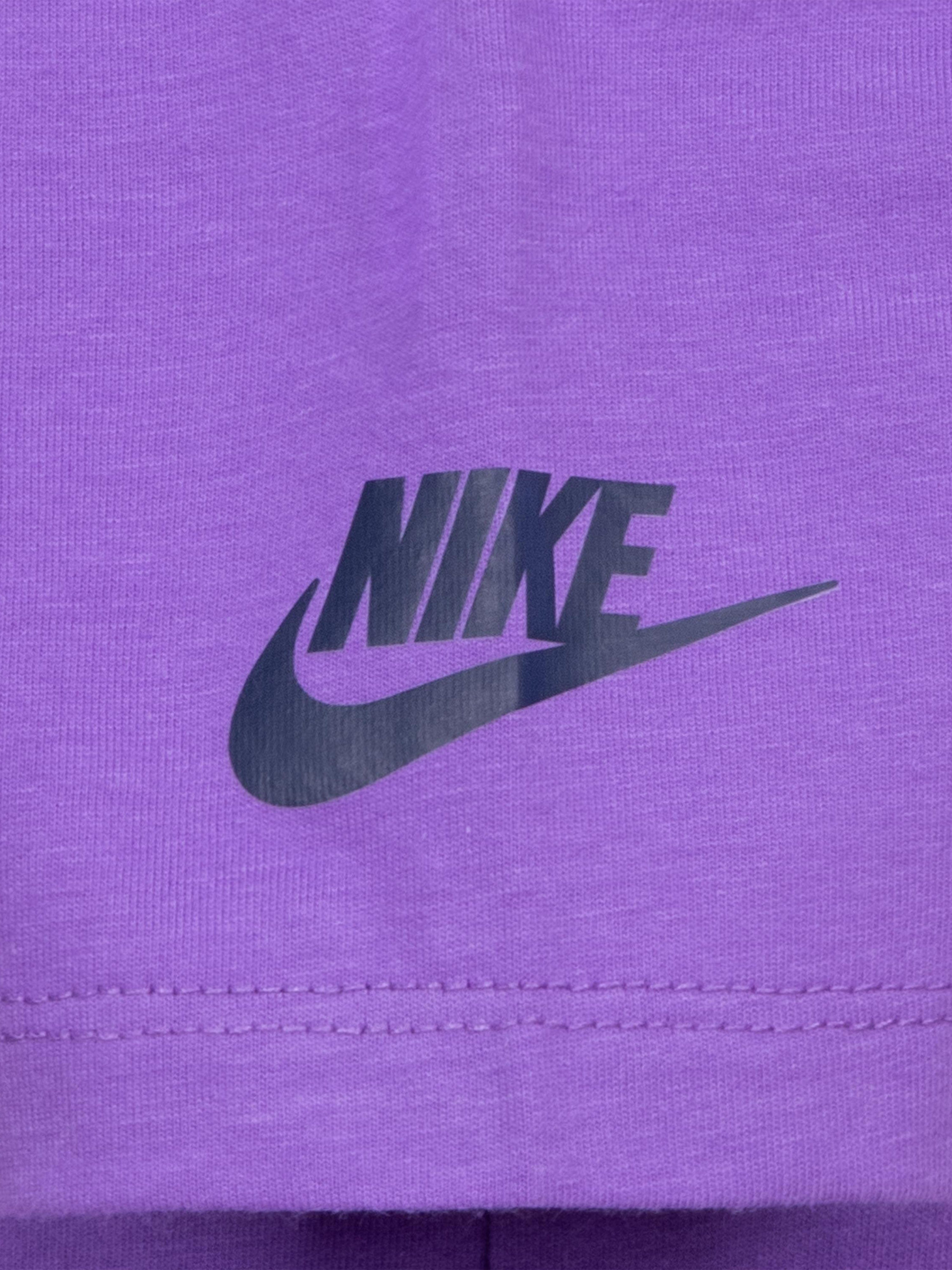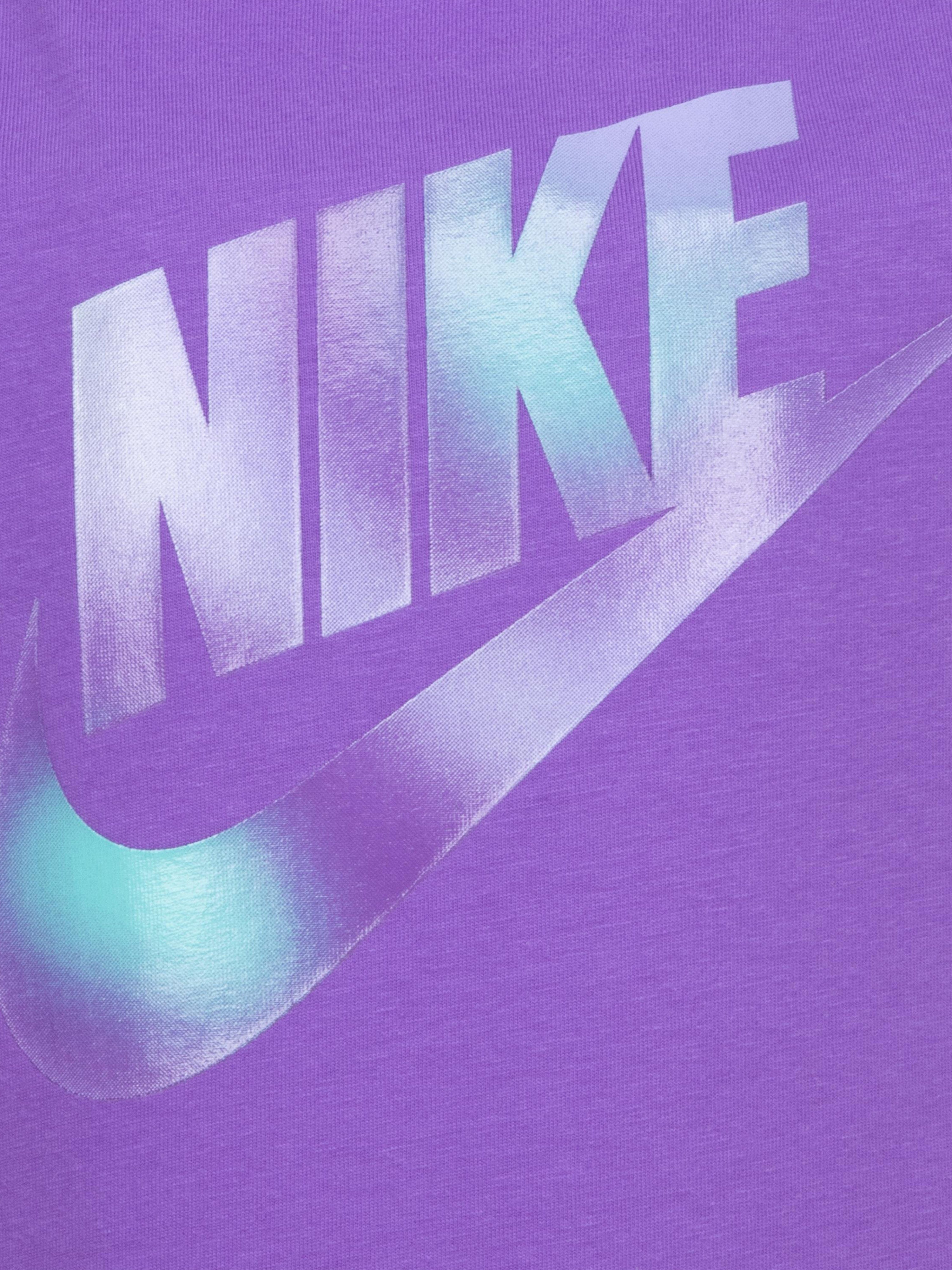 Introducing the Girls Printed Club Graphic T-Shirt in Purple by Nike—a quintessential addition to any girl's wardrobe, seamlessly blending fashion......