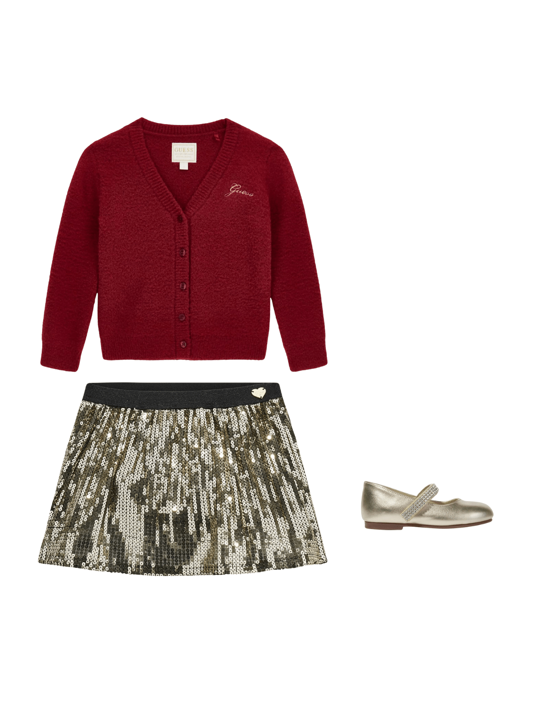 Introducing the luxurious Girls Sequin Mini Skirt in Gold by Guess, a glamorous addition to any young lady's wardrobe for......