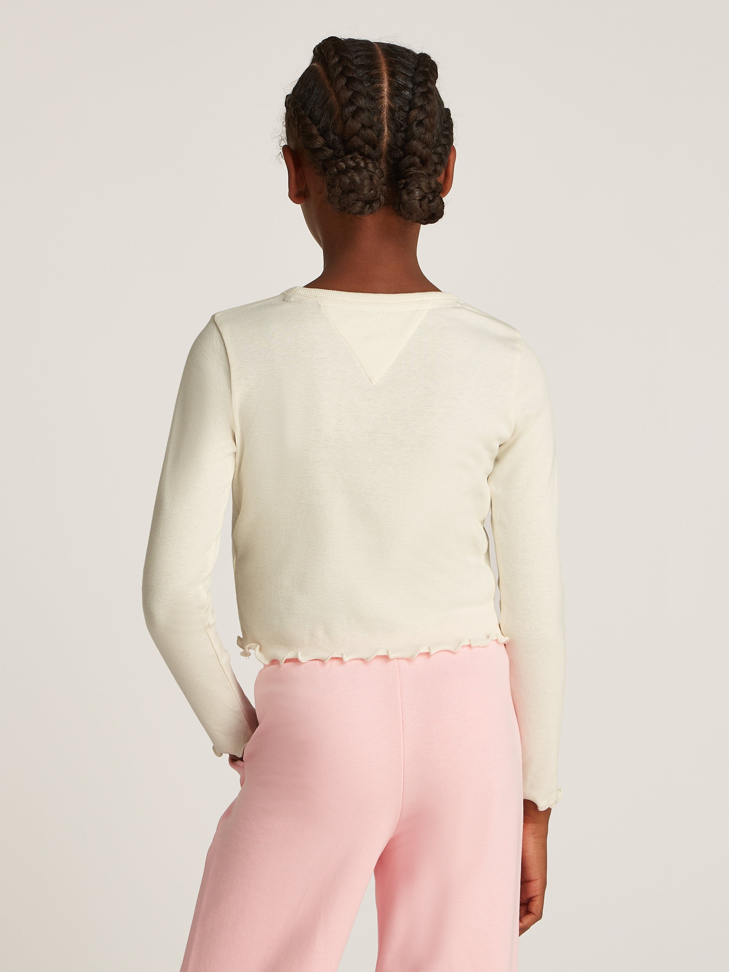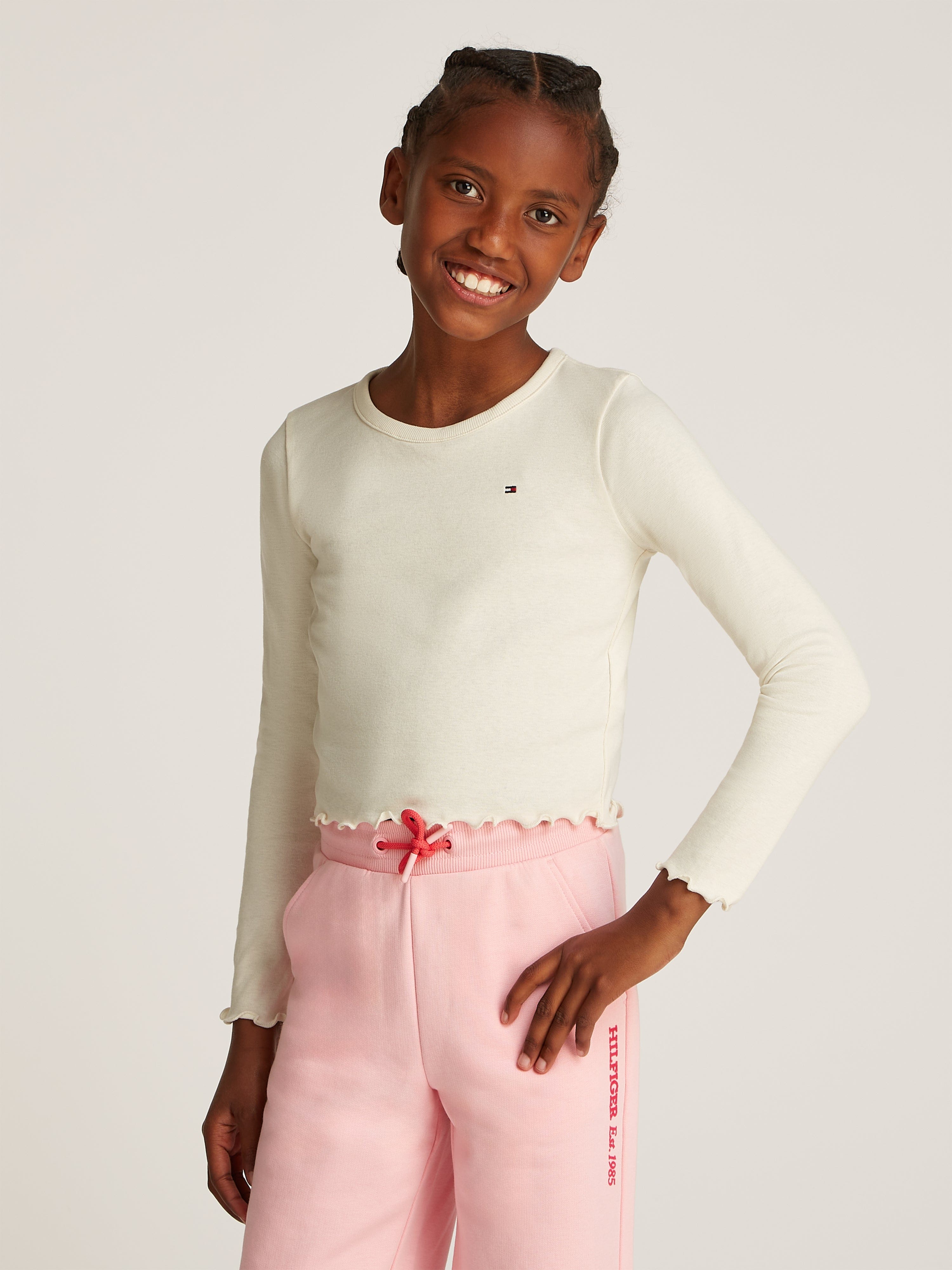 Discover the epitome of luxury and style with the Tommy Hilfiger Girls' Slub Knit Long Sleeve Top in refined Ivory.......
