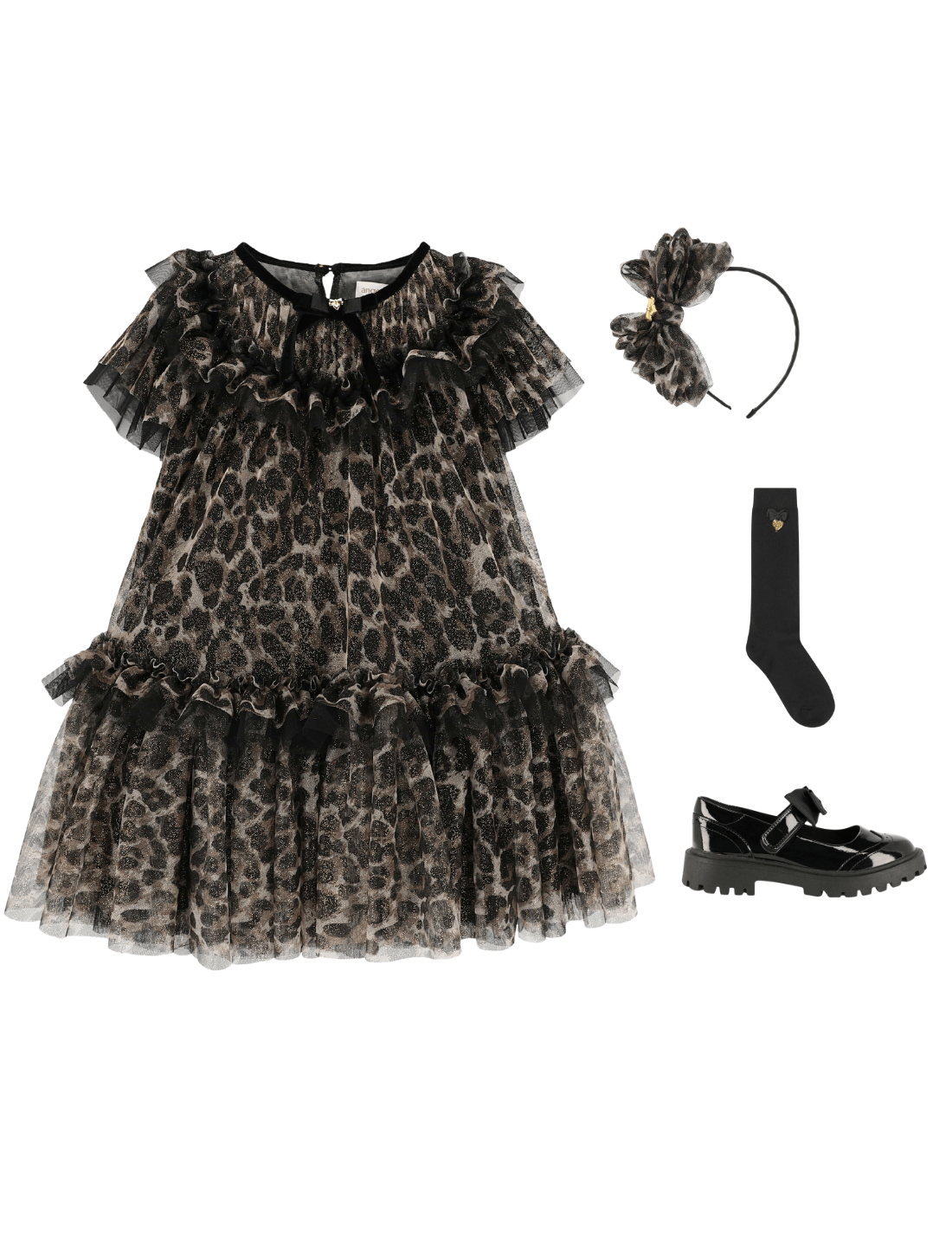 Introducing the Girls Victoria Tulle Leopard Dress in Black by angels face, the quintessence of AW2025's high-end fashion for your......