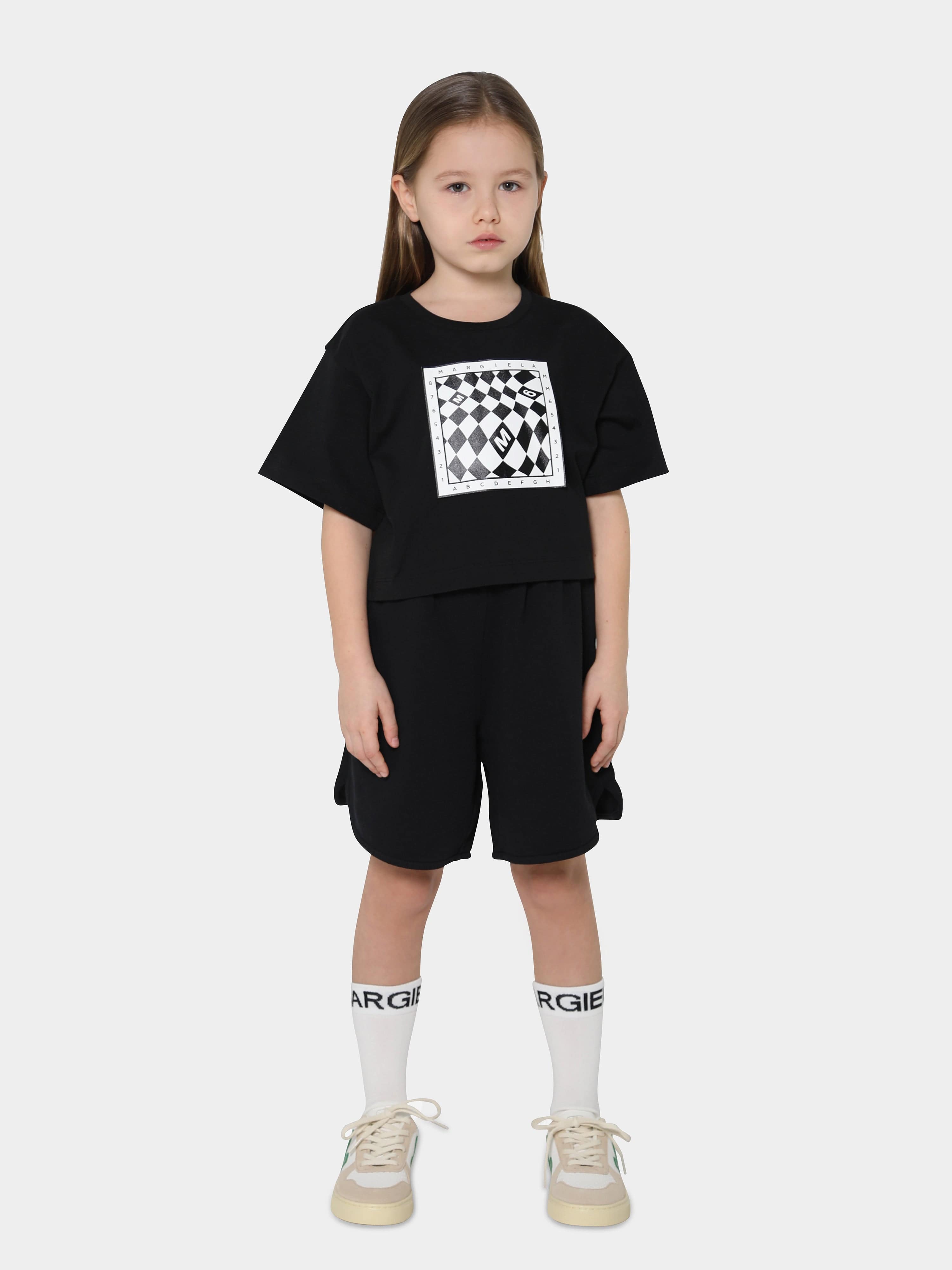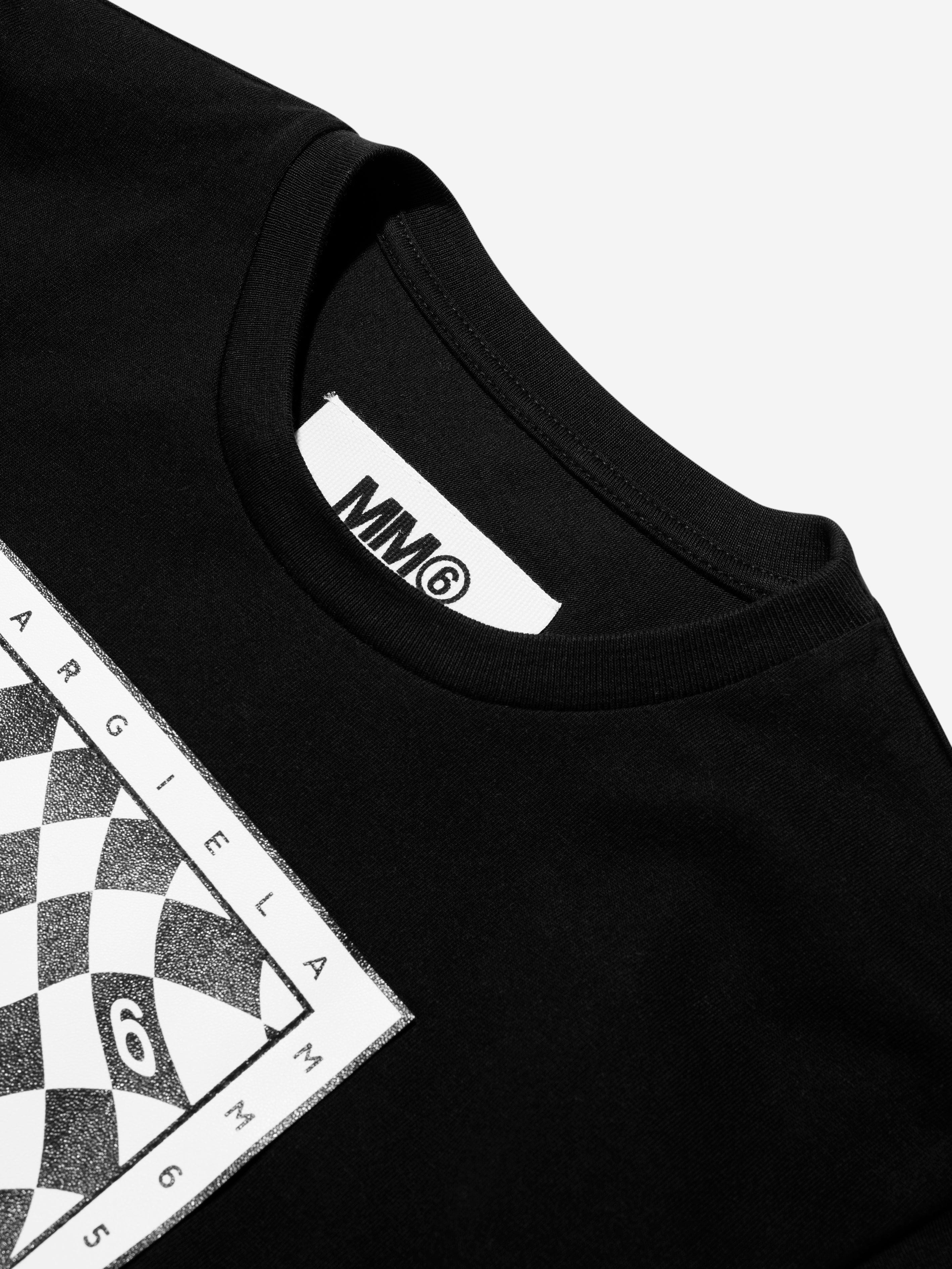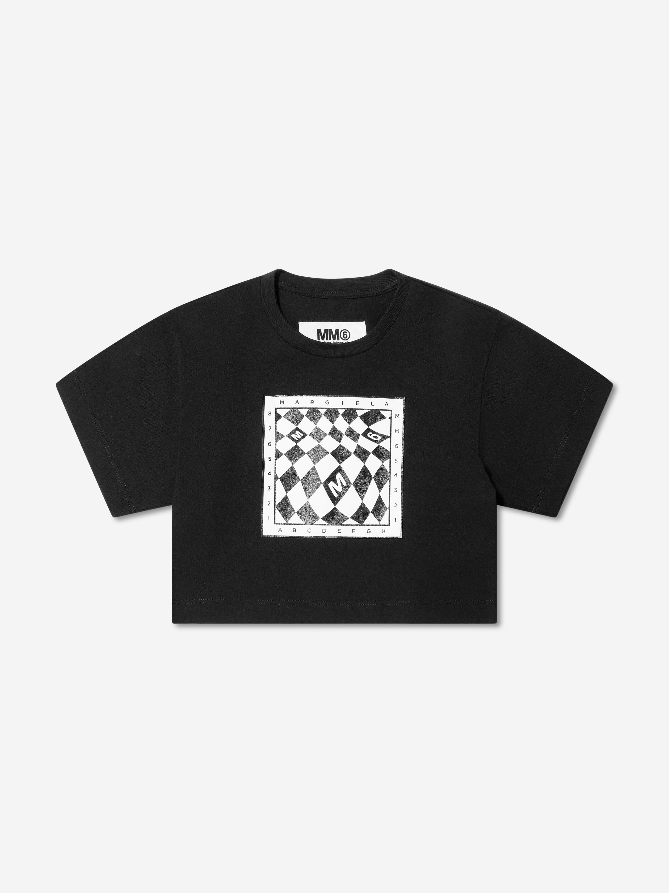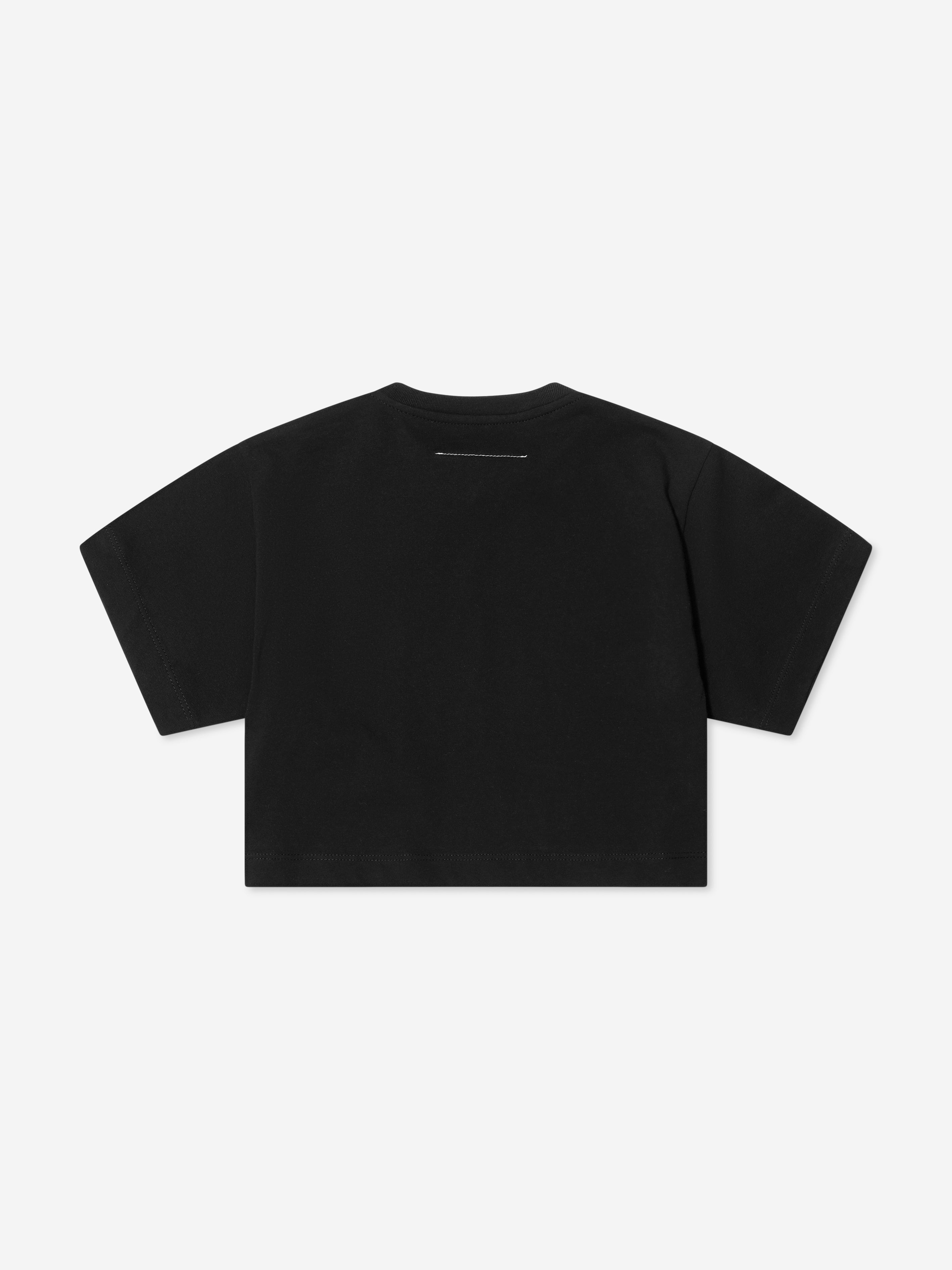 Uncover the Kids Cropped Logo Print T-Shirt In Black by MM6, a supreme addition to your unisex children's wardrobe. Ideal......