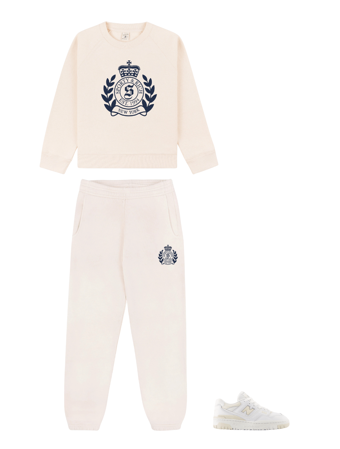 Introducing the Sporty and Rich Kids H&W Crest Sweatshirt in Ivory – a quintessential addition to any young fashionista's wardrobe......