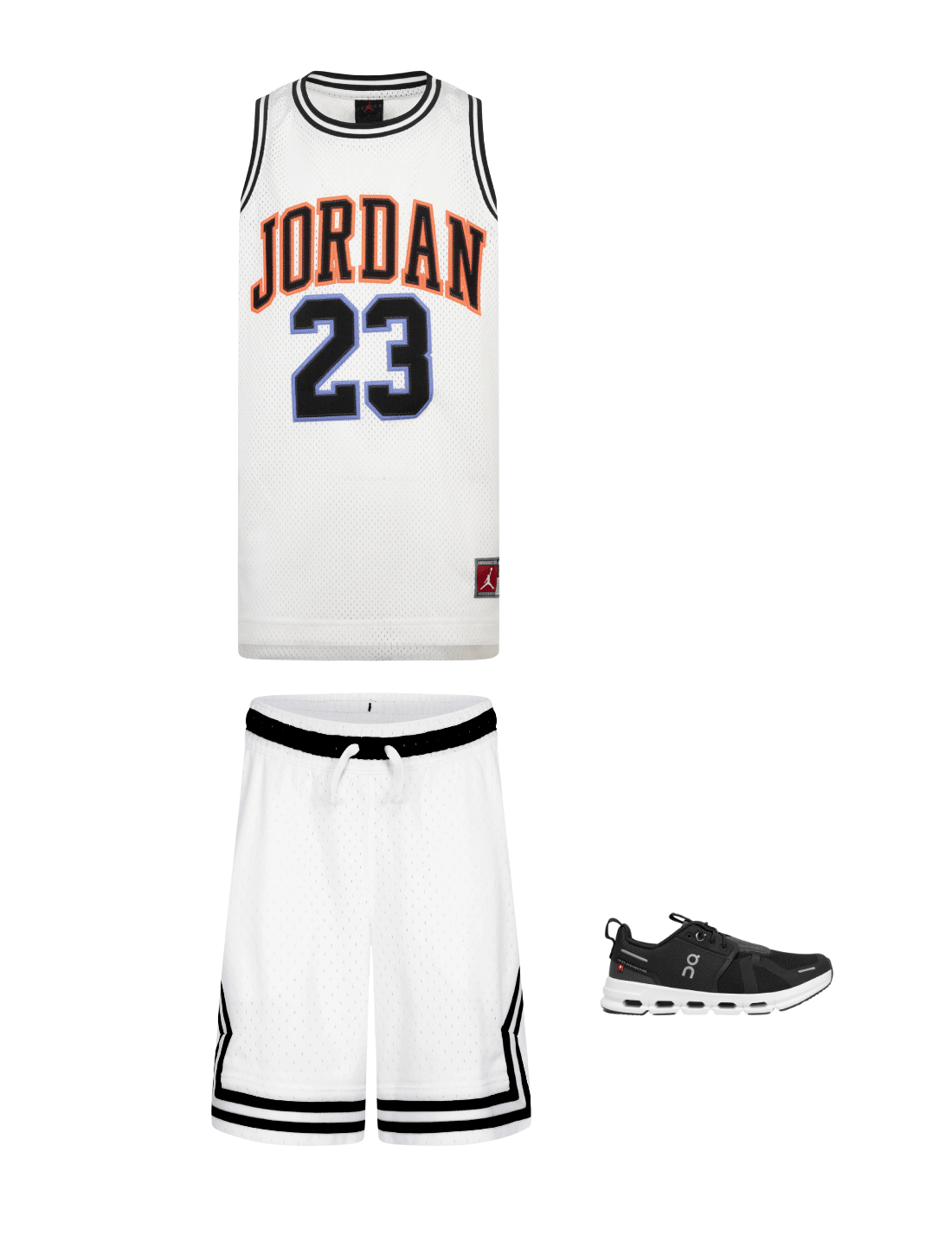 Introducing the Kids Jordan 23 Jersey in pristine white – a designer delight for your young lad or lass's SS2025......