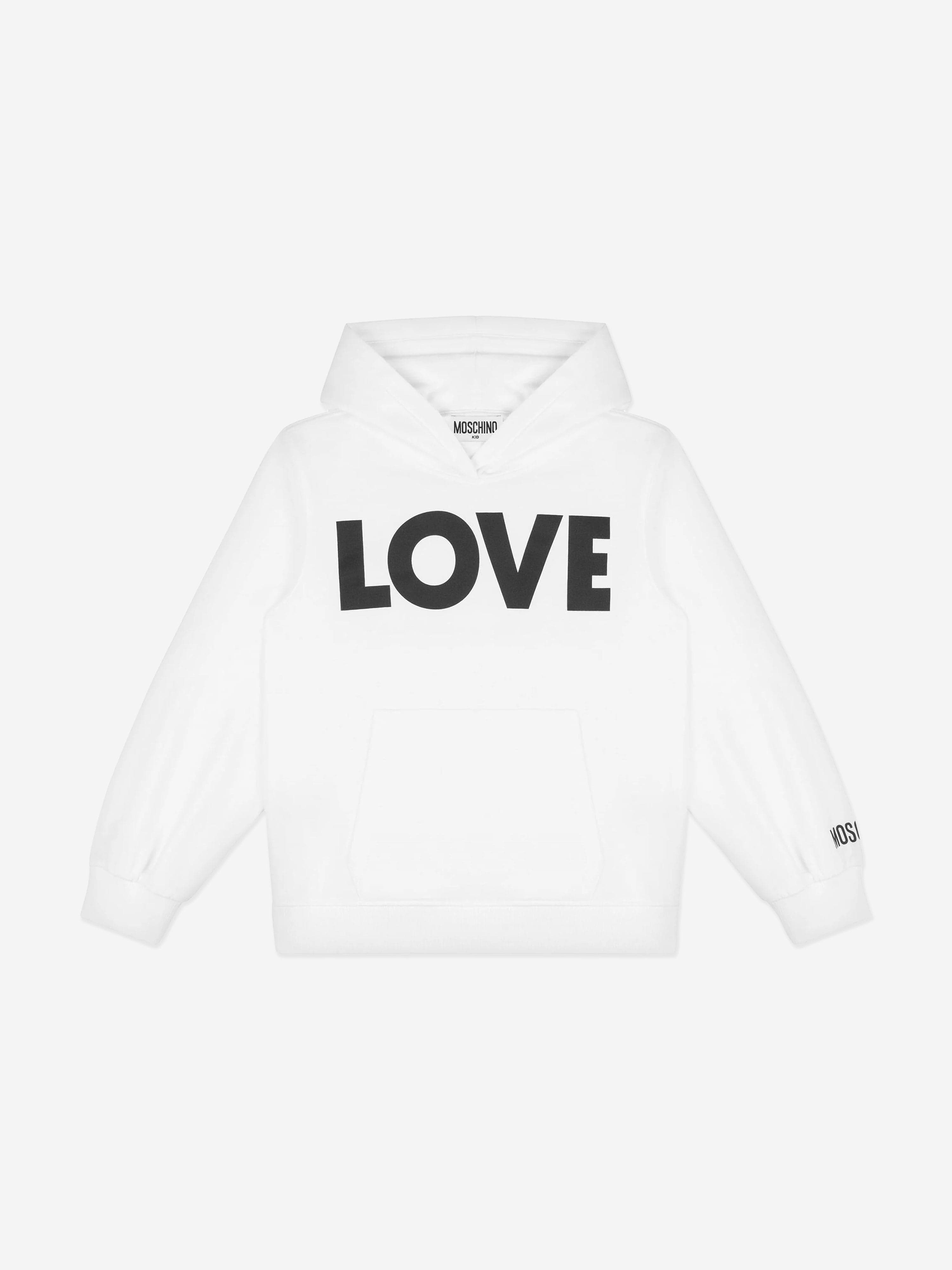 Moschino incorporate unique energy and a wistful elegance into their Italian designs. This white hoodie showcases a striking 'Love' print......